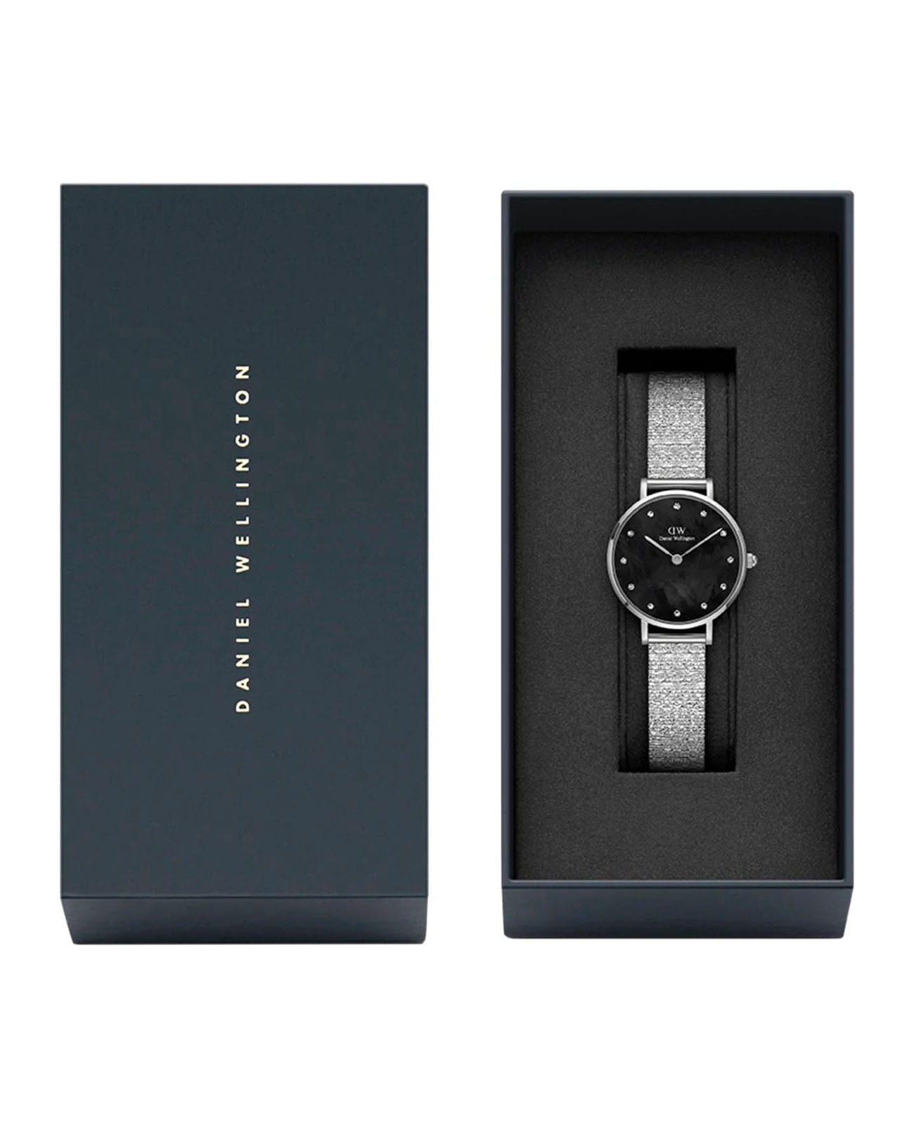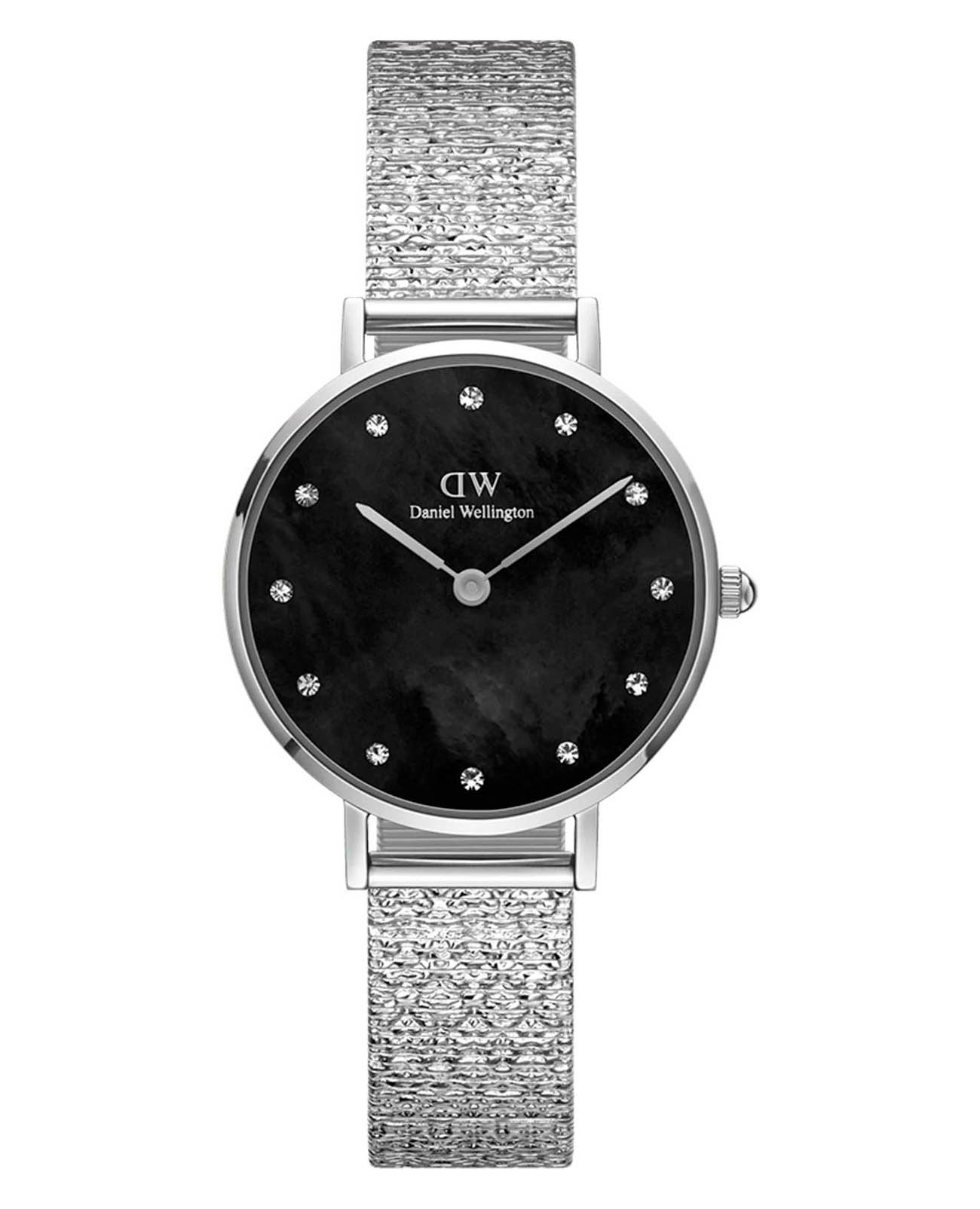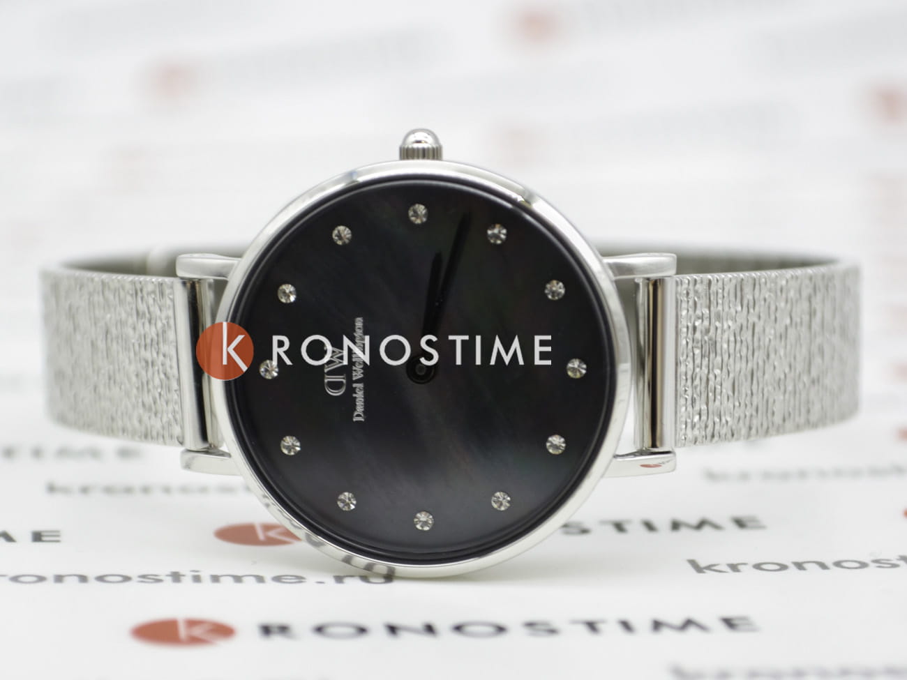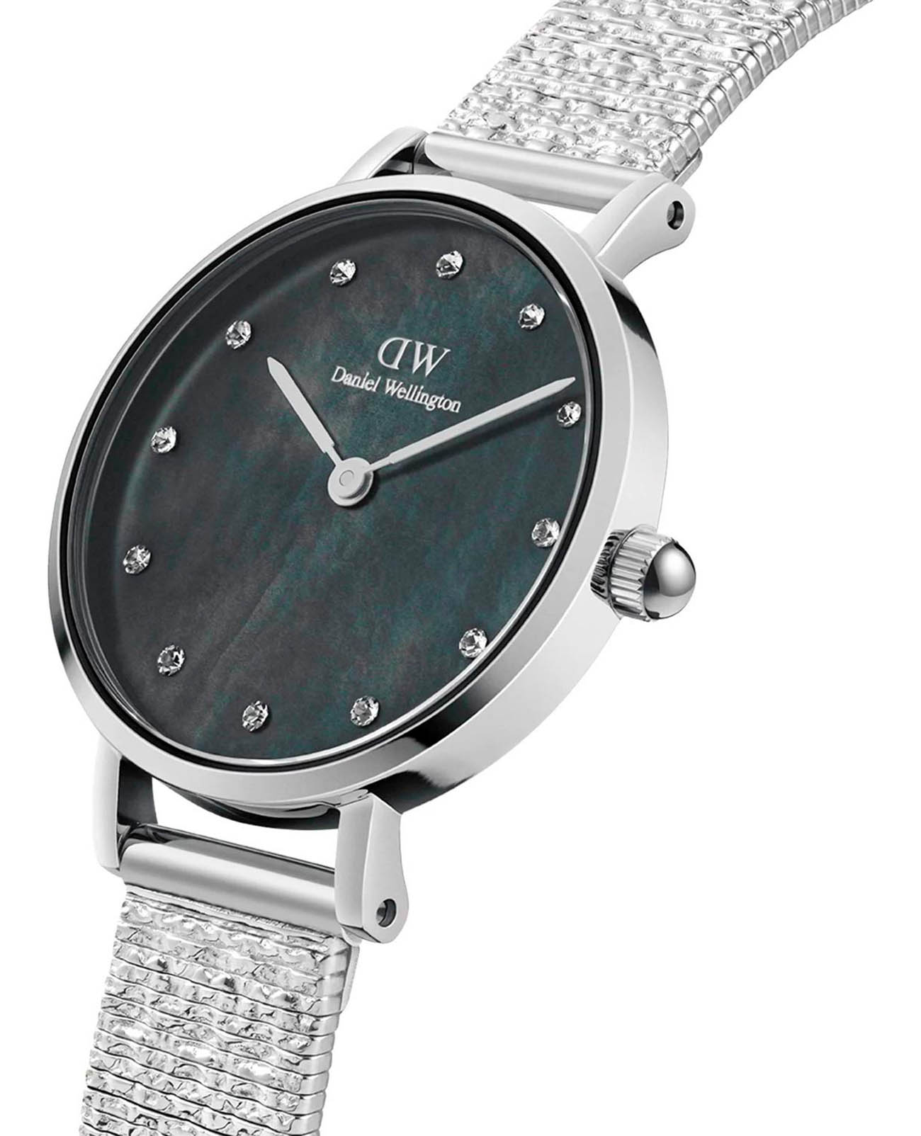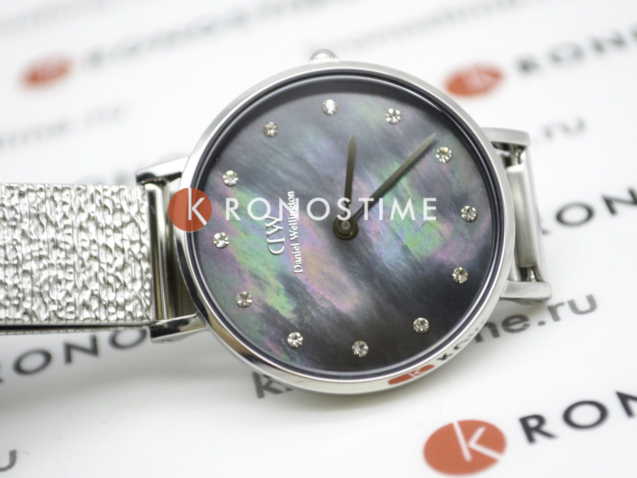 Женские наручные часы с минеральным стекломМинеральное стеклоМинеральное стекло представляет собой искусственно выращенный минерал кварца. Такое стекло отличается особой устойчивостью к повреждениям и царапинам. Уступает по некоторым качествам сапфировому стеклу. Daniel Wellington Petite DW00100593, кварцевый механизм с высокой точностью. Корпус часов изготовлен из стали. Циферблат украшен 12 кристаллами Swarovski. Накладные метки в виде точек из кристаллов. Рифленая заводная головка. Индивидуальный серийный номер. Класс водозащиты: 30 метров, позволит защитить корпус от случайных брызг или капель дождя. Стальной браслет с рельефным рисунком в виде облаков на раскладном замкеРаскладной замокДанный вариант застежки используется только на часах с металлическим браслетом. Отличительная особенность такого крепления в том, что длина браслета становится универсальной и вы можете самостоятельно отрегулировать нужный вам размер – застежка просто двигается по браслету часов..