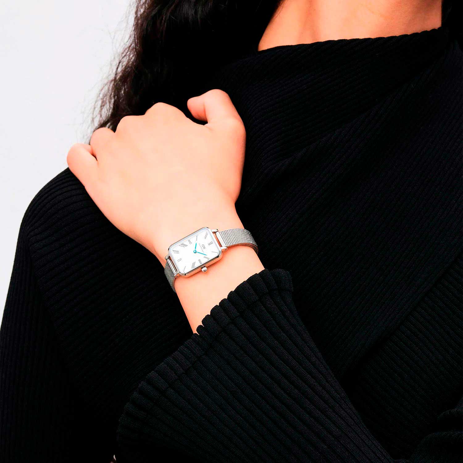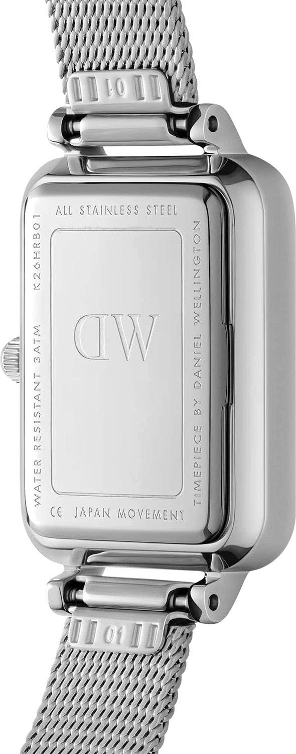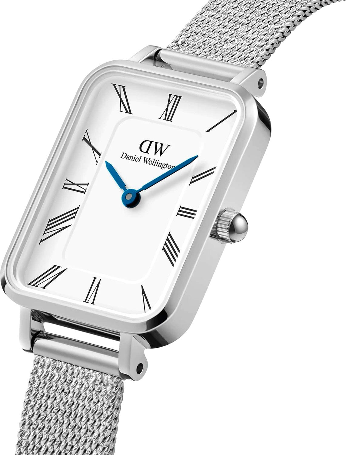 Женские наручные часы с минеральным стекломМинеральное стеклоМинеральное стекло представляет собой искусственно выращенный минерал кварца. Такое стекло отличается особой устойчивостью к повреждениям и царапинам. Уступает по некоторым качествам сапфировому стеклу. Daniel Wellington Quadro Roman Numerals Sterling DW00100690, кварцевый механизм с высокой точностью. Корпус часов изготовлен из нержавеющей стали. Накладные метки в виде штрихов. Японский кварцевый механизм. Рифленая заводная головка. Класс водозащиты: 30 метров, позволит защитить корпус от случайных брызг или капель дождя. Стальной браслет миланского плетения на раскладном замкеРаскладной замокДанный вариант застежки используется только на часах с металлическим браслетом. Отличительная особенность такого крепления в том, что длина браслета становится универсальной и вы можете самостоятельно отрегулировать нужный вам размер – застежка просто двигается по браслету часов..