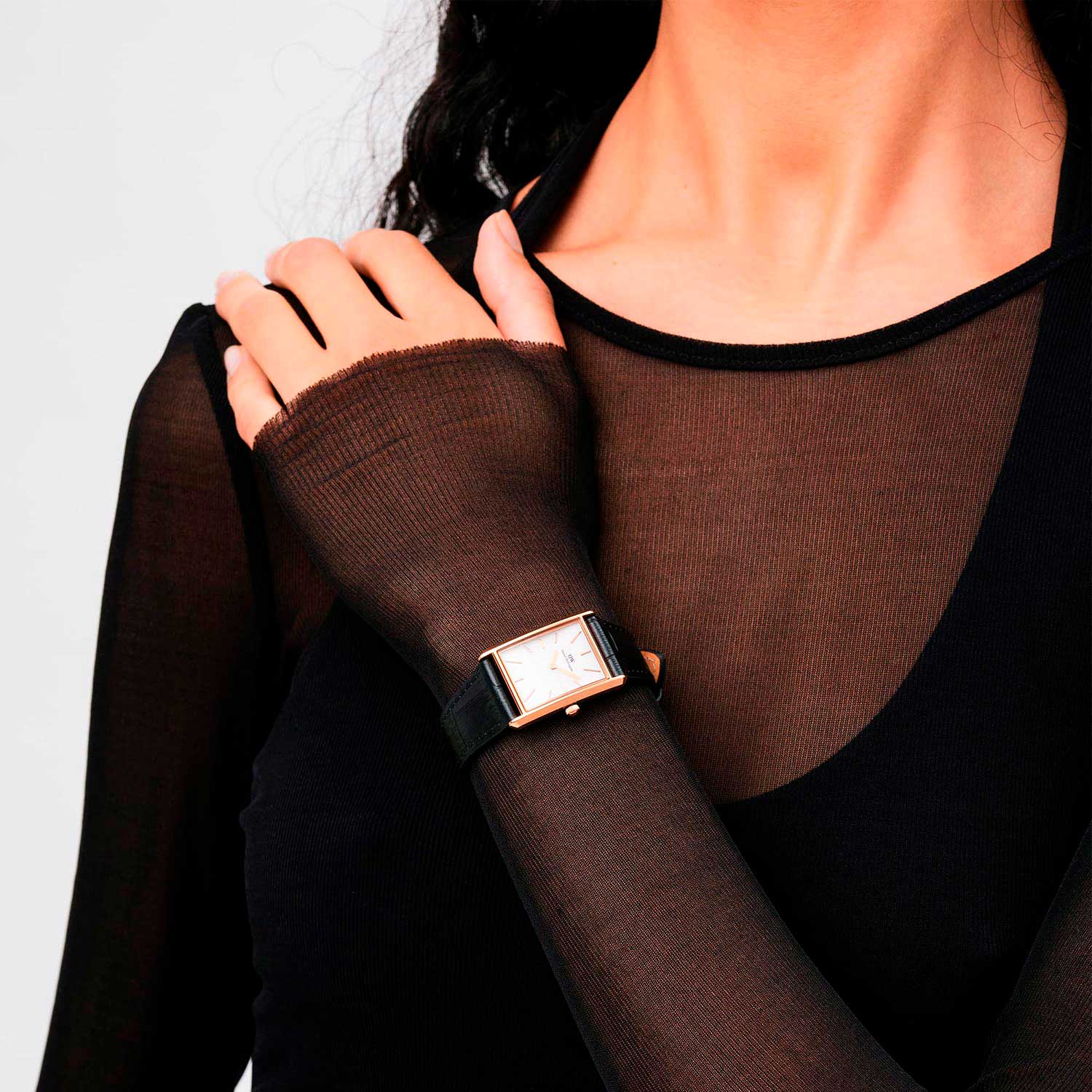 Шведские женские часы Daniel Wellington Bound Black Crocodile Rose Gold DW00100693
