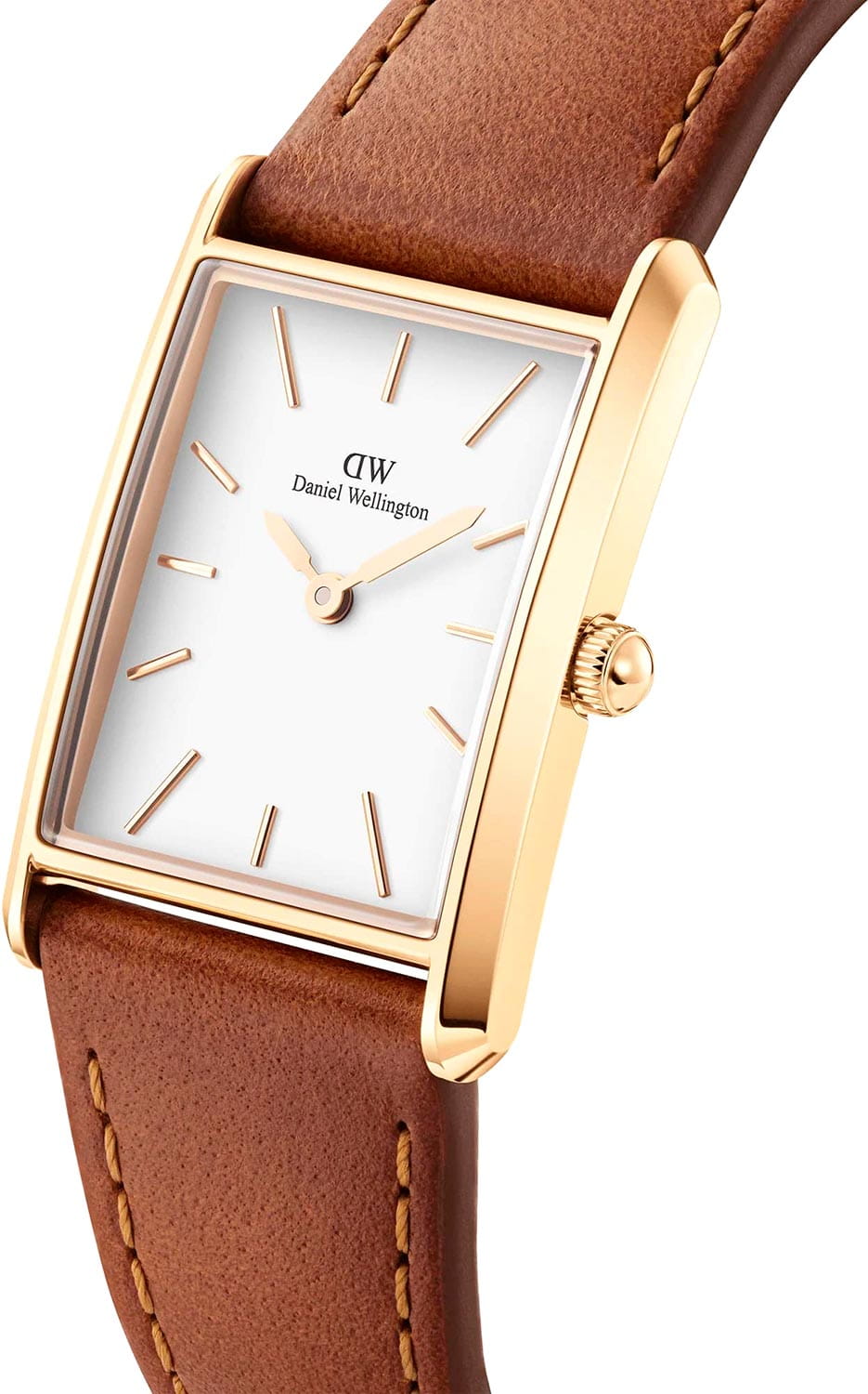 Женские наручные часы с минеральным стекломМинеральное стеклоМинеральное стекло представляет собой искусственно выращенный минерал кварца. Такое стекло отличается особой устойчивостью к повреждениям и царапинам. Уступает по некоторым качествам сапфировому стеклу. Daniel Wellington Bound Durham Gold DW00100696, кварцевый механизм с высокой точностью. Корпус часов изготовлен из нержавеющей стали с PVD-покрытиемPVDУльтратонкое покрытие наносится в технике вакуумного напыления, сочетает в себе нитрид титана особой прочности со слоем золота или оксида хрома. Несёт в себе декоративную или защитную функцию.. Накладные метки в виде штрихов. Японский кварцевый механизм. Рифленая заводная головка. Класс водозащиты: 30 метров, позволит защитить корпус от случайных брызг или капель дождя. Кожаный ремешок на стандартной застежке.