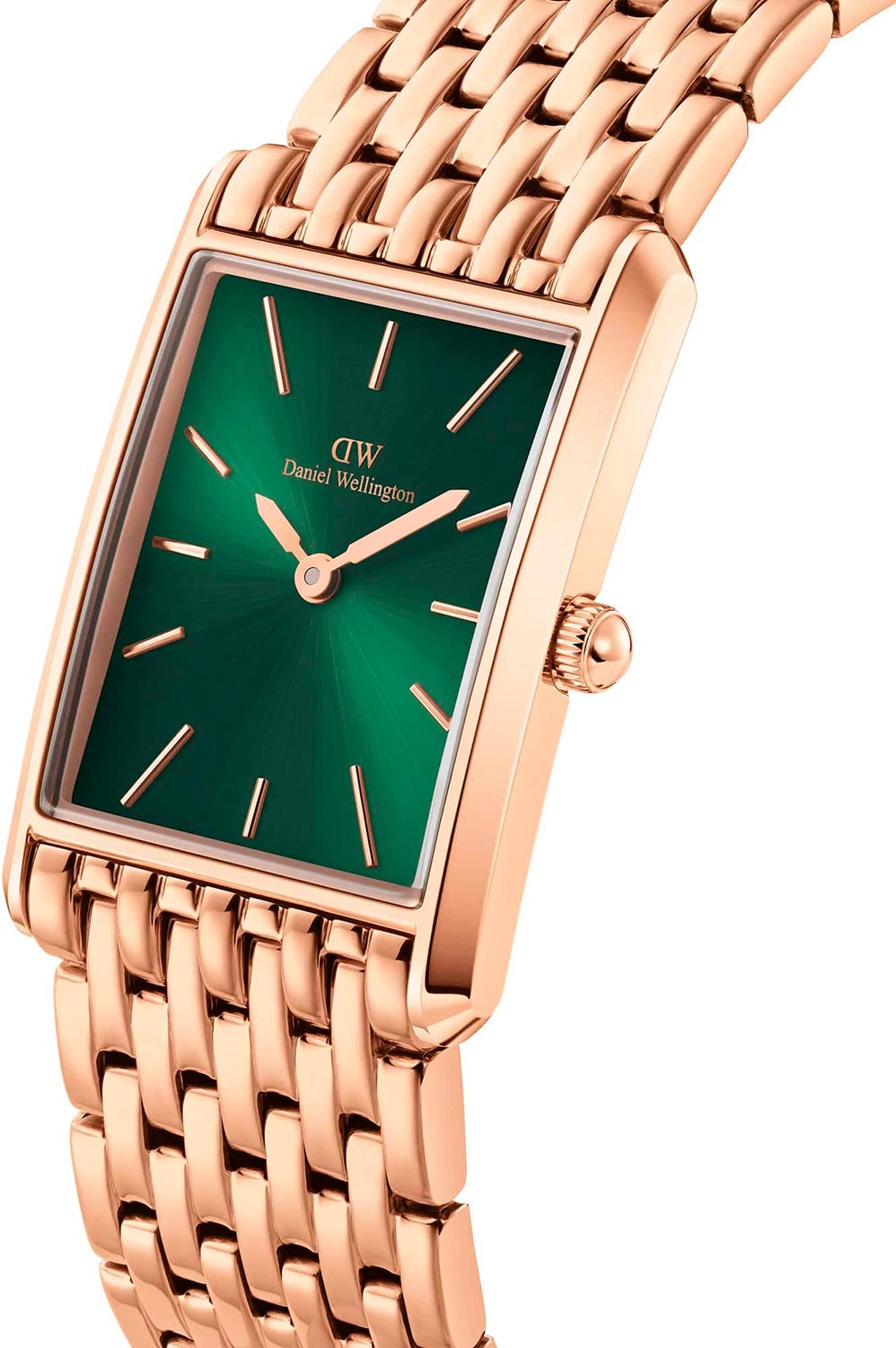 Женские наручные часы с минеральным стекломМинеральное стеклоМинеральное стекло представляет собой искусственно выращенный минерал кварца. Такое стекло отличается особой устойчивостью к повреждениям и царапинам. Уступает по некоторым качествам сапфировому стеклу. Daniel Wellington Bound 9-Link Emerald Sunray DW00100704, кварцевый механизм с высокой точностью. Корпус часов изготовлен из нержавеющей стали с PVD-покрытиемPVDУльтратонкое покрытие наносится в технике вакуумного напыления, сочетает в себе нитрид титана особой прочности со слоем золота или оксида хрома. Несёт в себе декоративную или защитную функцию.. Накладные метки в виде штрихов. Японский кварцевый механизм. Рифленая заводная головка. Класс водозащиты: 30 метров, позволит защитить корпус от случайных брызг или капель дождя. Стальной браслет на раскладной застёжкеРаскладная застёжкаТакой тип застёжки используется только на браслетах из металла. Она никогда не раскрывается полностью, происходит разделение на 2 и более частей. Раскладывающая застёжка снизит вероятность потери часов к минимуму. с PVD-покрытиемPVDУльтратонкое покрытие наносится в технике вакуумного напыления, сочетает в себе нитрид титана особой прочности со слоем золота или оксида хрома. Несёт в себе декоративную или защитную функцию..