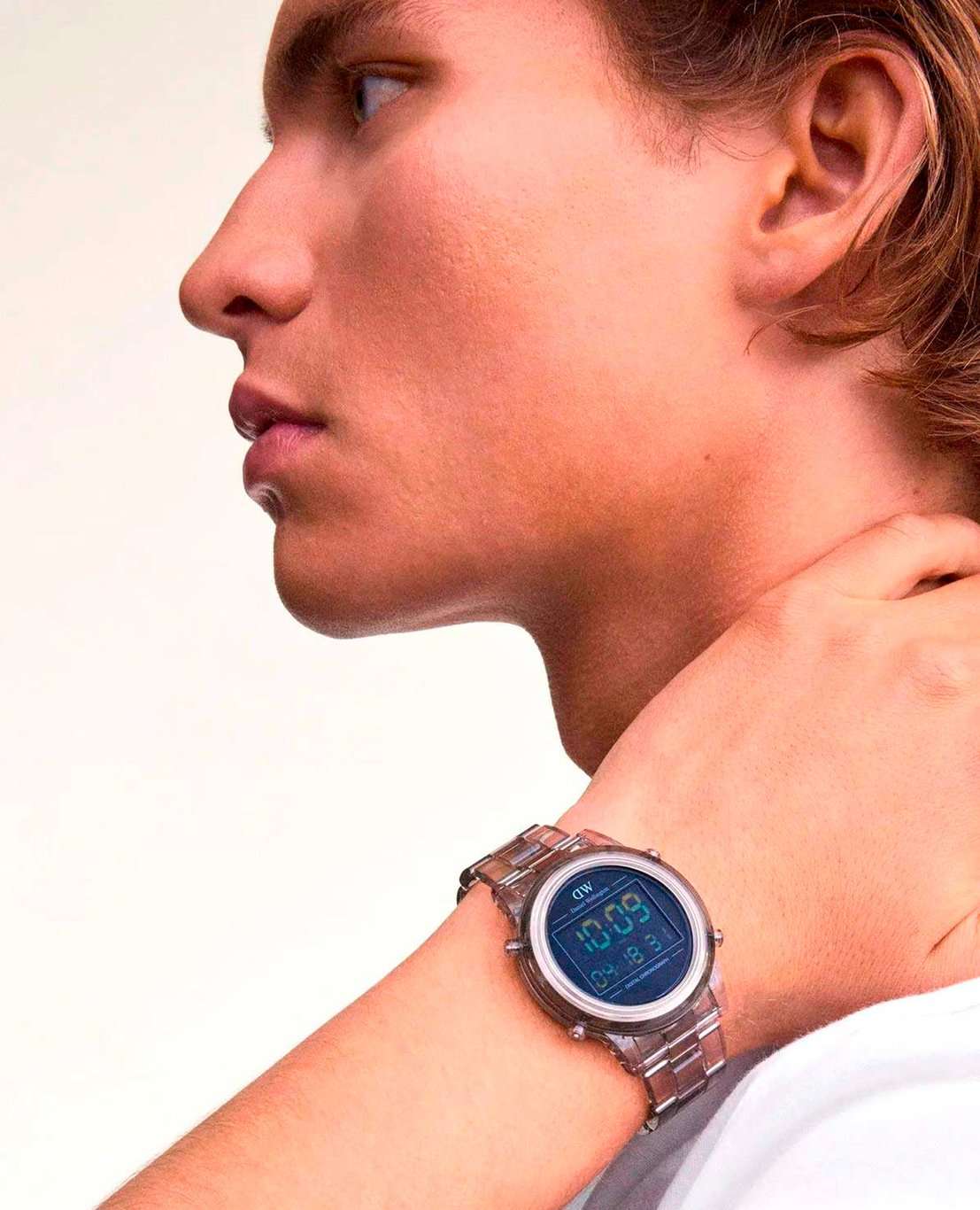 Наручные часы Daniel Wellington Retro Digital DW00100766 представляют собой стильный аксессуар с ретро дизайном. Модель обладает круглым корпусом диаметром 42 мм, выполненным из экологичного пластика и нержавеющей стали, что обеспечивает прочность и устойчивость к внешним воздействиям . Цифровой черный циферблат подчеркивает современный вид модели и оснащен функцией хронографаХронографФункция позволяет измерять отрезки времени с особой точностью: часы, минуты, секунды. Верным признаком хронографа является наличие на циферблате 3 дополнительных окошек-счётчиков. . Ремешок выполнен из прозрачного биопластика на застёжке «бабочка» с кнопкамиЗастёжка "бабочка"Такой вид застёжки дополняется предохранителями, помогающими избежать случайного раскрытия браслета. Обладают изящным исполнением. , гарантирующей комфортное ношение . Часы работают на кварцевом механизме с цифровым дисплеем, поддерживающим такие функции, как секундомерСекундомерСекундоме́р — прибор, способный измерять интервалы времени с точностью до долей секунды., таймерТаймерОтсчитывает секунды в обратном направлении в заданном интервале времени., будильникБудильникБуди́льник — часы, в заданный момент времени подающие звуковой, световой и/или в редких случаях другой сигнал. и автоматический календарь, что делает их практичным выбором для повседневного использования . Для защиты циферблата используется органическое стекло. Водонепроницаемость часов составляет 30 метров / 3 ATM, что позволяет использовать их при мытье рук или в дождь, но не рекомендуется для плавания . Простой дизайн этих часов делает их универсальным аксессуаром, сохраняющим баланс между функциональностью и элегантностью .