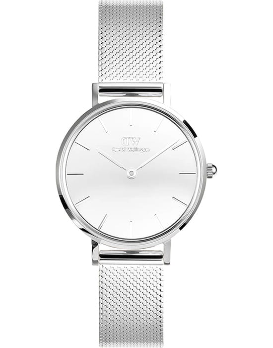 Женские наручные часы с минеральным стекломМинеральное стеклоМинеральное стекло представляет собой искусственно выращенный минерал кварца. Такое стекло отличается особой устойчивостью к повреждениям и царапинам. Уступает по некоторым качествам сапфировому стеклу. Daniel Wellington Petite Reflection Silver DW00100796, кварцевый механизм с высокой точностью. Корпус часов изготовлен из нержавеющей стали. Накладные метки в виде штрихов. Японский кварцевый механизм. Рифленая заводная головка. Класс водозащиты: 30 метров, позволит защитить корпус от случайных брызг или капель дождя. Стальной браслет миланского плетения на раскладном замкеРаскладной замокДанный вариант застежки используется только на часах с металлическим браслетом. Отличительная особенность такого крепления в том, что длина браслета становится универсальной и вы можете самостоятельно отрегулировать нужный вам размер – застежка просто двигается по браслету часов..