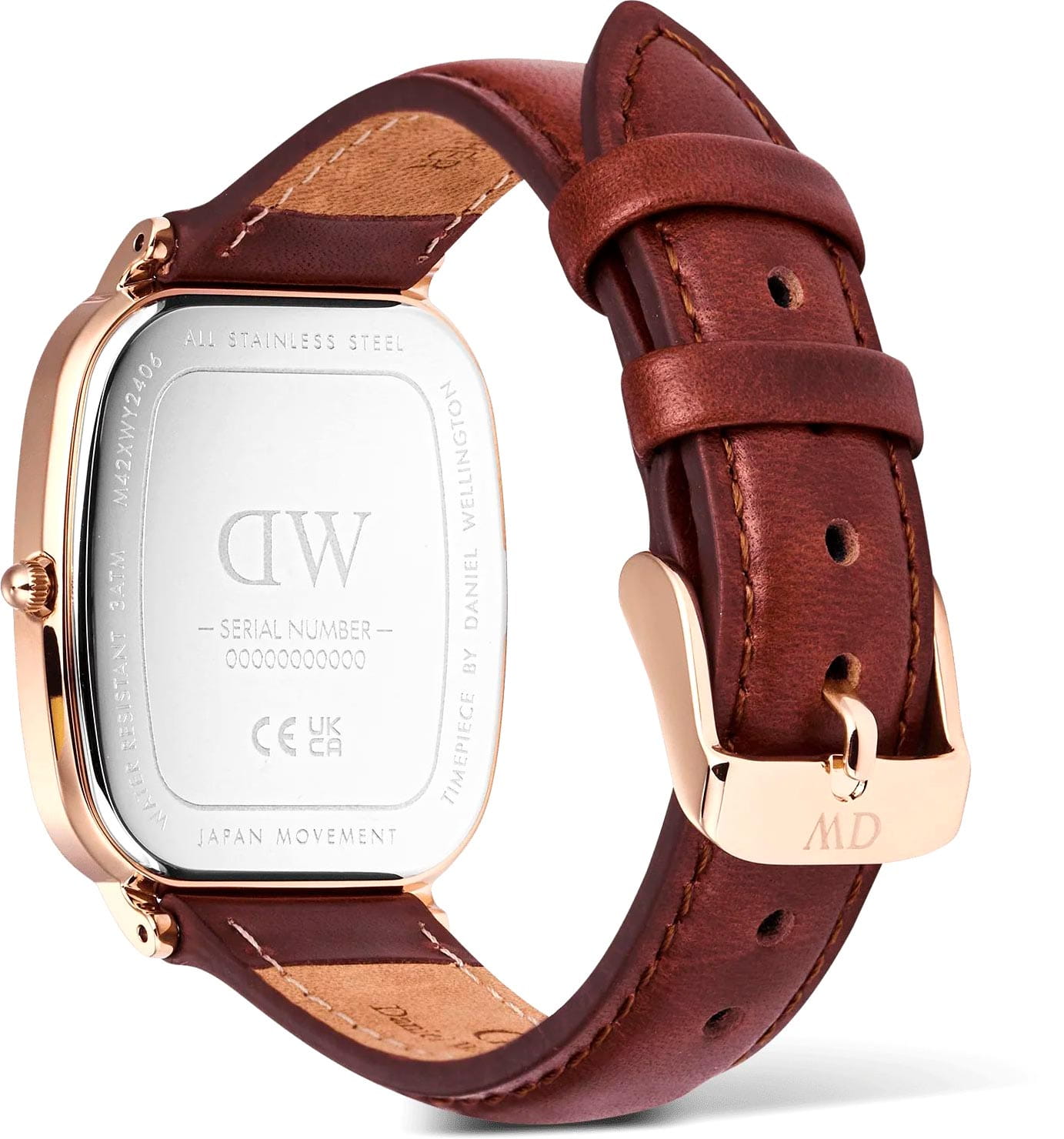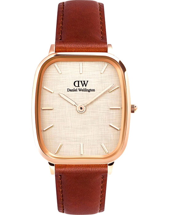 Daniel Wellington Marlon St Mawes Linen Rose Gold — стильные унисекс-часы с утончённым дизайном, в которых сочетаются строгие линии и изысканная лёгкость. Прямоугольный корпус размером 32×36 мм выполнен из нержавеющей стали с PVD-покрытиемPVDУльтратонкое покрытие наносится в технике вакуумного напыления, сочетает в себе нитрид титана особой прочности со слоем золота или оксида хрома. Несёт в себе декоративную или защитную функцию., создающим мягкий и благородный блеск.Минеральное стеклоМинеральное стеклоМинеральное стекло представляет собой искусственно выращенный минерал кварца. Такое стекло отличается особой устойчивостью к повреждениям и царапинам. Уступает по некоторым качествам сапфировому стеклу. устойчивое к мелким механическим повреждениям. Циферблат Linen оформлен в светлом тоне с изящной текстурой «лён», подчёркивающей скандинавский минимализм и добавляющей образу утончённости. Строгие метки и тонкие стрелки поддерживают гармонию линий. Модель оснащена надёжным кварцевым механизмом, гарантирующим точность хода. Кожаный ремешок на стандартной застежке Daniel Wellington — универсальный аксессуар для ценителей лаконичного стиля, идеально подходящий как к повседневным, так и к более торжественным образам.