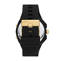 Мужские часы с круглым пластиковым корпусом.