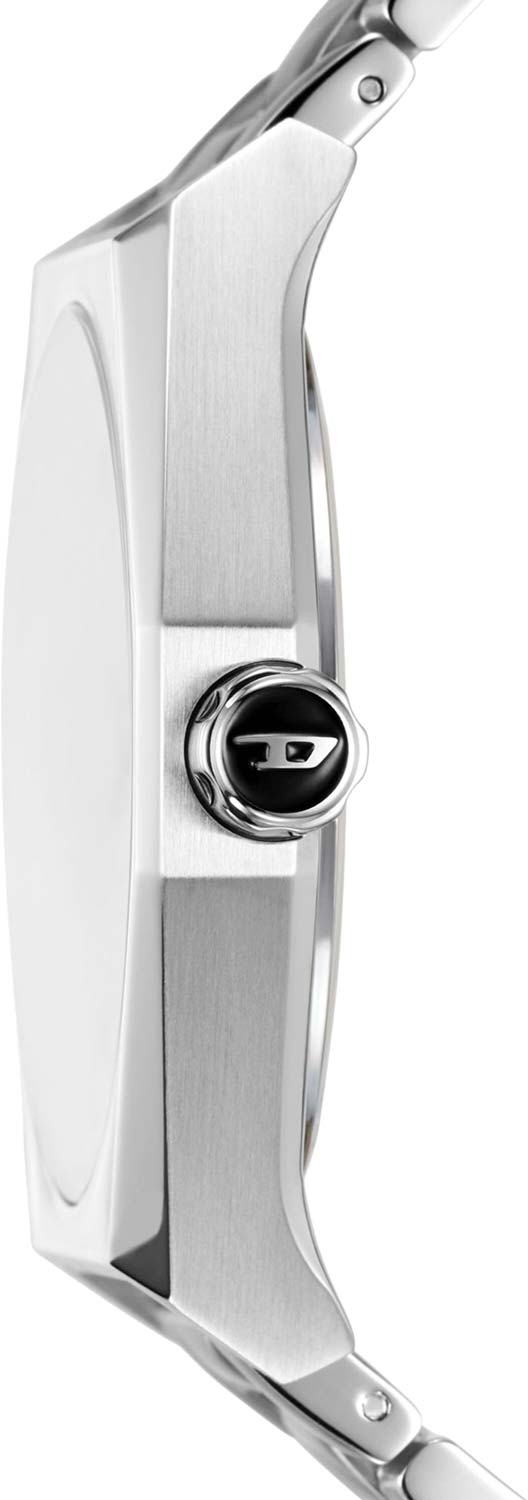 Мужские наручные часы с минеральным стекломМинеральное стеклоМинеральное стекло представляет собой искусственно выращенный минерал кварца. Такое стекло отличается особой устойчивостью к повреждениям и царапинам. Уступает по некоторым качествам сапфировому стеклу. Diesel Scraper DZ2195, кварцевый механизм с высокой точностью. Класс водозащиты: 50 метров, позволит защитить корпус от случайных брызг или капель дождя. Корпус и браслет часов изготовлены из нержавеющей стали. Стальной браслет с частичным IP-покрытиемIP-покрытиеМетод ионного напыления. Демонстрирует повышенную устойчивость к истиранию, окислению и химическим веществам. Под воздействием высокого давления и температуры около 1500°C молекулы металла надёжно соединяются с частицами корпуса часов. на раскладной застёжкеРаскладная застёжкаТакой тип застёжки используется только на браслетах из металла. Она никогда не раскрывается полностью, происходит разделение на 2 и более частей. Раскладывающая застёжка снизит вероятность потери часов к минимуму.. Метки в виде штрихов и арабских цифр. Циферблат выполнен по технологии Sunray (солнечные лучи). Стрелки и метки с люминесцентным покрытиемЛюминесцентное покрытиеПозволяет считывать показания времени в темноте. Производители наносят на стрелки, часовые индексы, безель или поверхность циферблата светонакопительный состав, дающий холодное свечение..