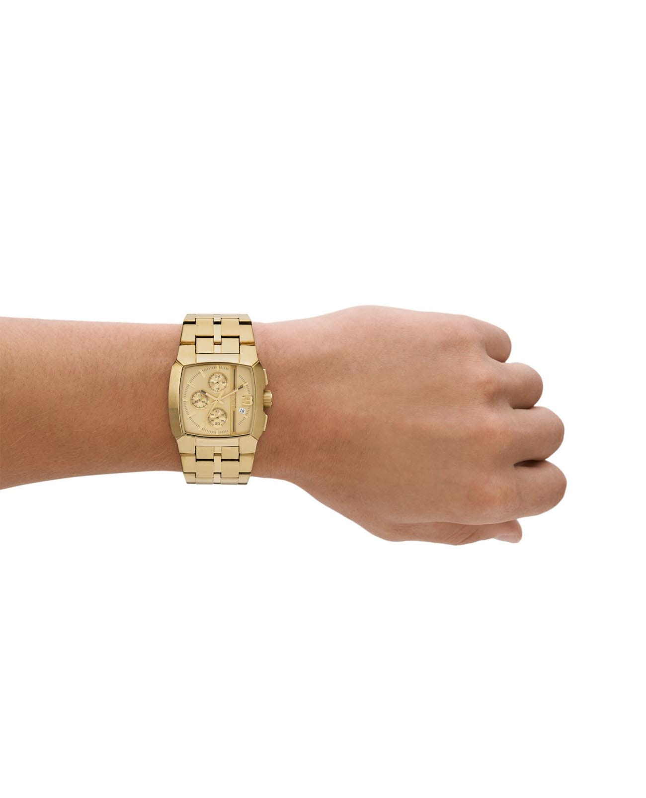 Женские наручные часы с минеральным стекломМинеральное стеклоМинеральное стекло представляет собой искусственно выращенный минерал кварца. Такое стекло отличается особой устойчивостью к повреждениям и царапинам. Уступает по некоторым качествам сапфировому стеклу. Diesel Cliffhanger DZ4639, кварцевый механизм с высокой точностью. Класс водозащиты: 50 метров, позволит защитить корпус от случайных брызг или капель дождя. Корпус и браслет часов изготовлены из нержавеющей стали с IP-покрытиемIP-покрытиеМетод ионного напыления. Демонстрирует повышенную устойчивость к истиранию, окислению и химическим веществам. Под воздействием высокого давления и температуры около 1500°C молекулы металла надёжно соединяются с частицами корпуса часов.. Стрелки с люминесцентным покрытиемЛюминесцентное покрытиеПозволяет считывать показания времени в темноте. Производители наносят на стрелки, часовые индексы, безель или поверхность циферблата светонакопительный состав, дающий холодное свечение.. Стальной браслет на раскладной застёжкеРаскладная застёжкаТакой тип застёжки используется только на браслетах из металла. Она никогда не раскрывается полностью, происходит разделение на 2 и более частей. Раскладывающая застёжка снизит вероятность потери часов к минимуму..
