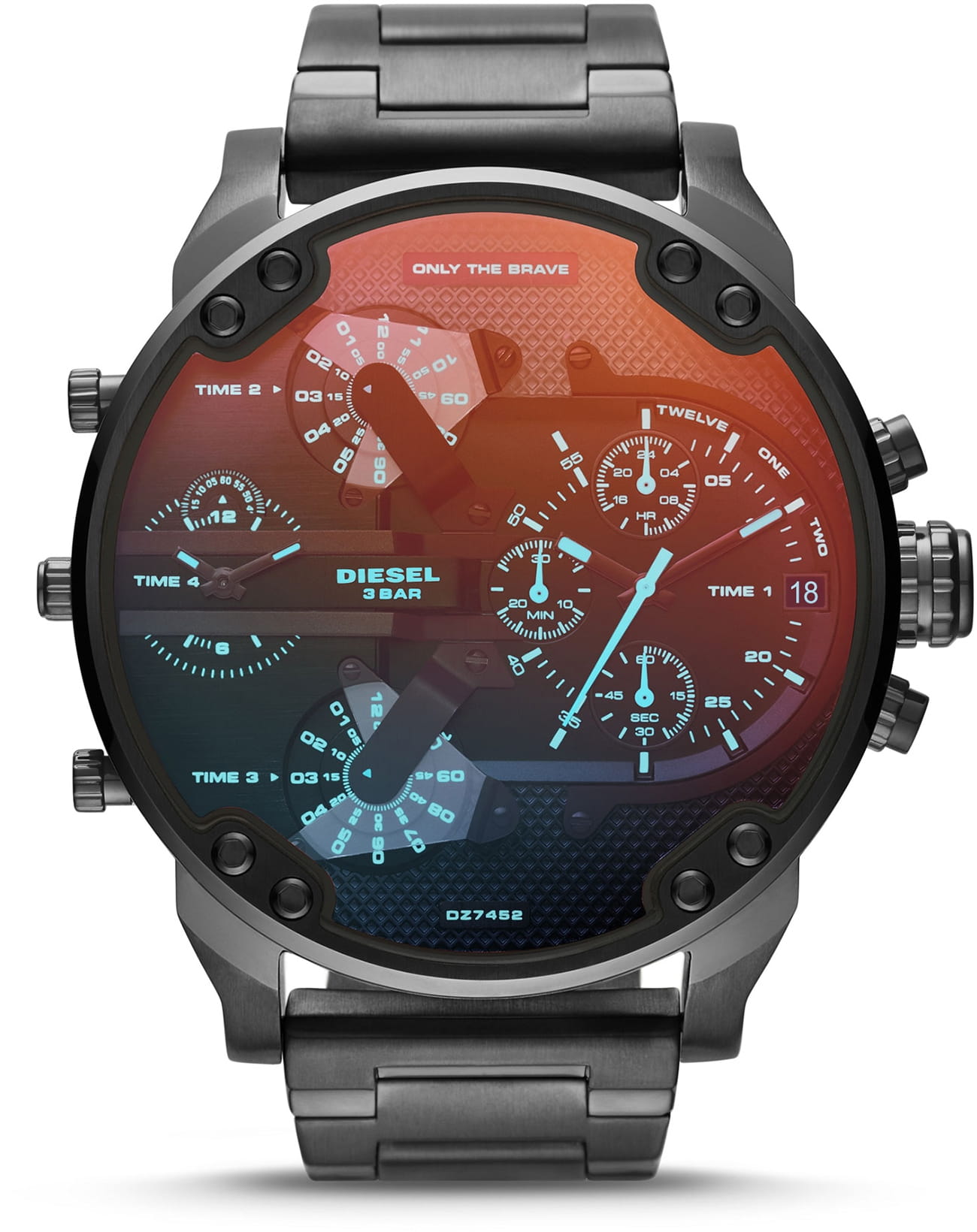 Мужские американские часы с 4 часовыми поясами Diesel Mr. Daddy 2.0 DZ7452, кварцевый механизм с высокой точностью. Класс водозащиты: 30 метров, позволит защитить корпус от случайных брызг или капель дождя. Корпус часов изготовлен из стали, цвета.