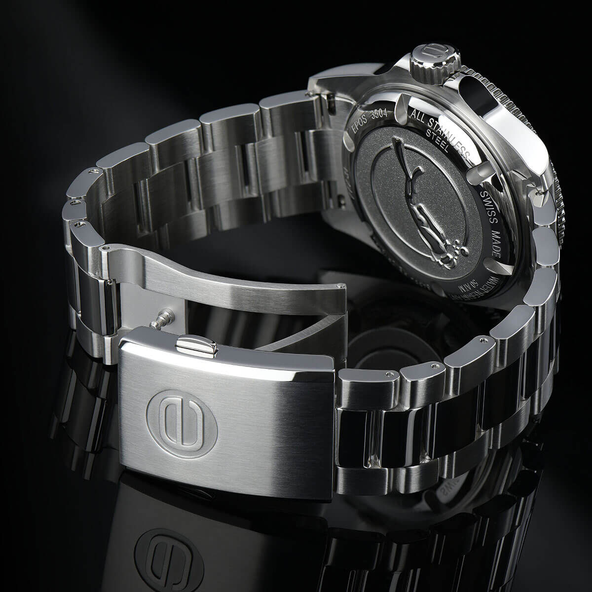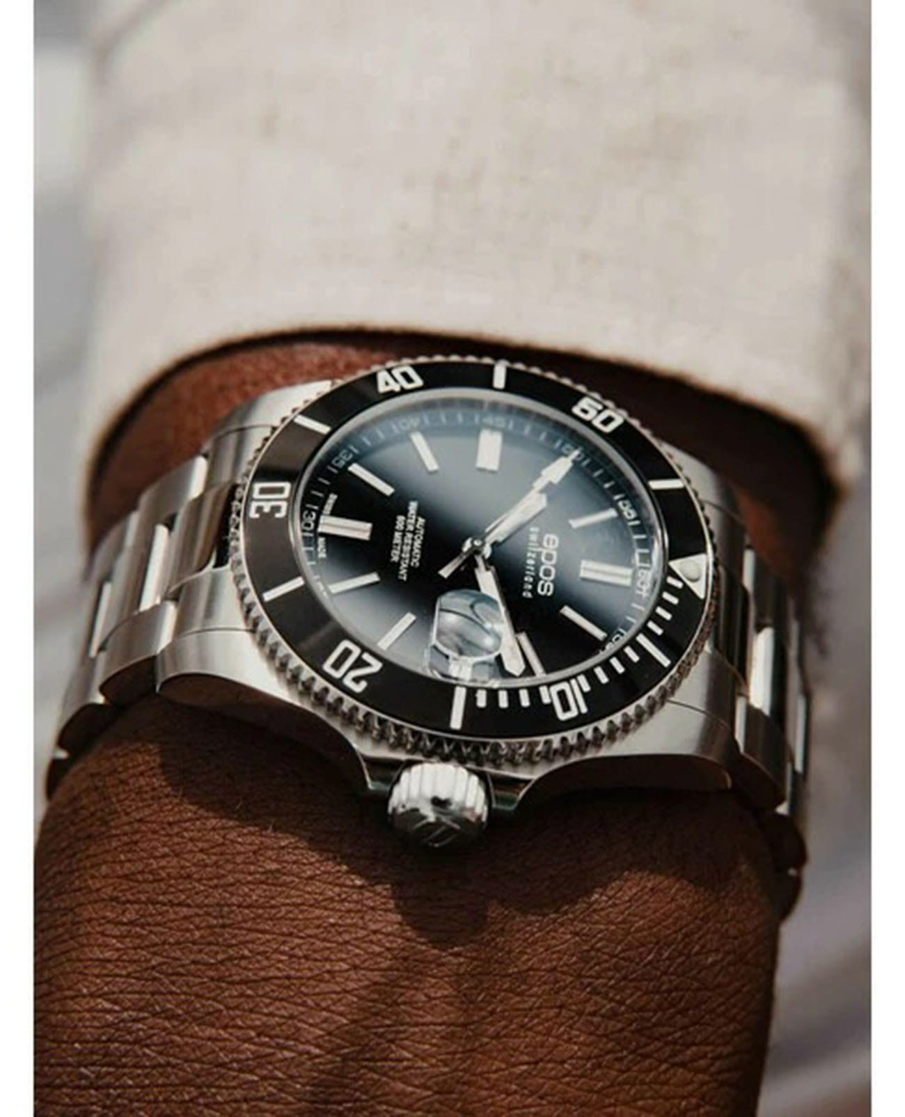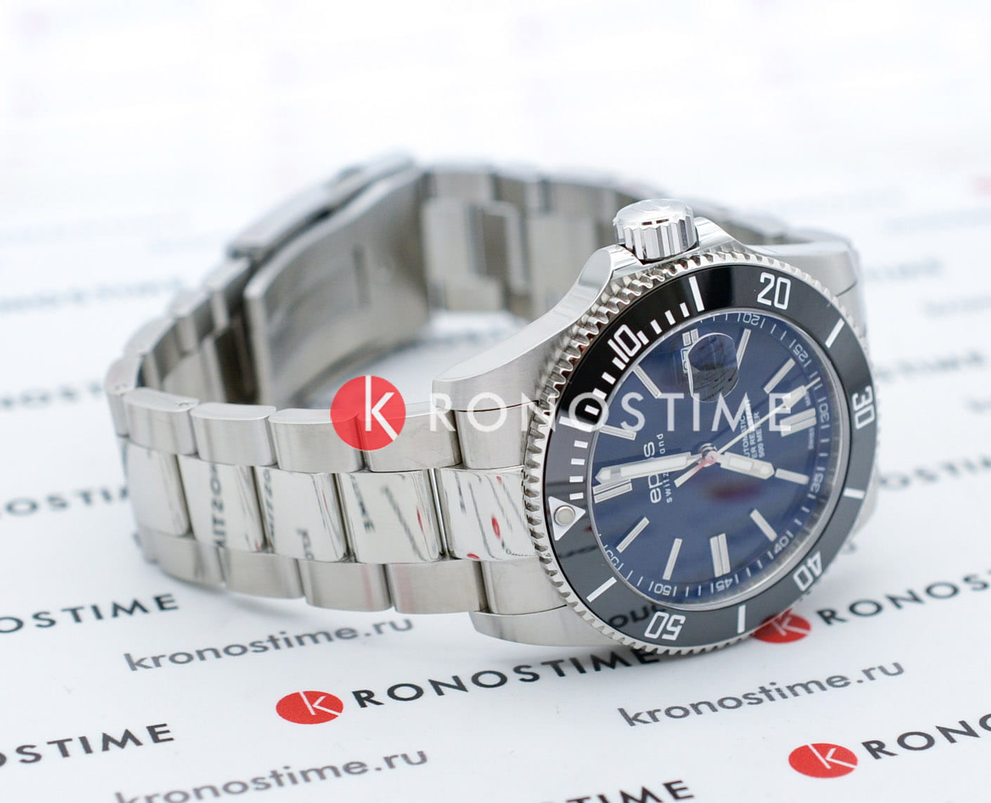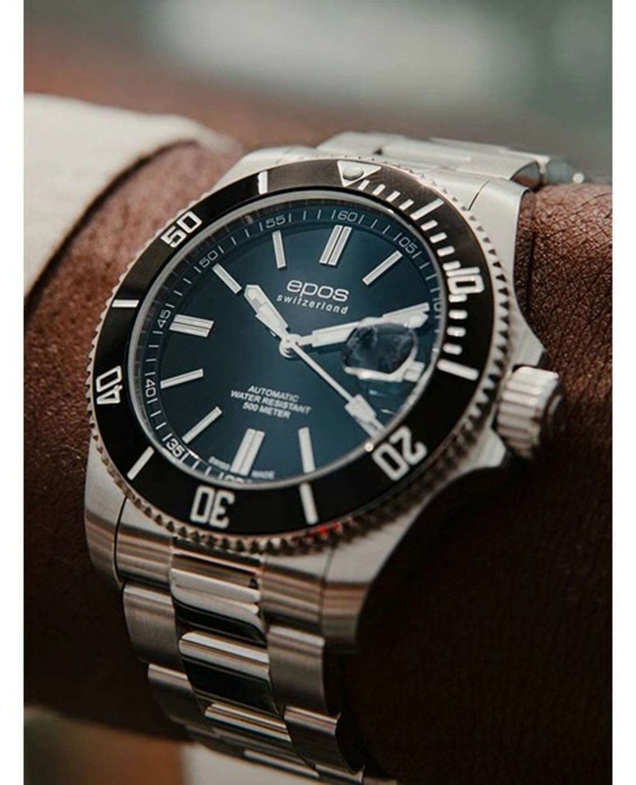 Мужские швейцарские механические часы с автоподзаводом Epos Diver 3504.131.20.15.30. Сапфировое стеклоСапфировое стеклоПрочный и надёжный материал из кристалла сапфира синтетического происхождения, характеризующийся особой твёрдостью и устойчивостью к царапинам и повреждениям. устойчивое к появлению царапин, обладающее высокой прозрачностью. Корпус и браслет часов изготовлен из нержавеющей стали. Врачающийся в одном направлении безельБезельВнешний ободок, закрепляющий стекло. В спортивных часах так называется поворотное кольцо с делениями на циферблате, выполняет роль таймера – замеряет отрезки времени на шкале. Неподвижный безель – элемент декора. Однонаправленно вращающийся безель на дайверских часах позволяет фиксировать моменты погружения и выныривания на поверхность. из нержавеющей стали с PVDPVDУльтратонкое покрытие наносится в технике вакуумного напыления, сочетает в себе нитрид титана особой прочности со слоем золота или оксида хрома. Несёт в себе декоративную или защитную функцию. покрытием. Лупа над окошком даты. Прозрачная задняя крышка. Завинчивающаяся заводная головка. Класс водозащиты: 500 метров, позволит плавать, нырять и заниматься другими водными видами спорта. Стальной браслет на раскладной застёжкеРаскладная застёжкаТакой тип застёжки используется только на браслетах из металла. Она никогда не раскрывается полностью, происходит разделение на 2 и более частей. Раскладывающая застёжка снизит вероятность потери часов к минимуму..