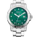 Женские кварцевые часы Epos из коллекции Ladies Diamonds — это элегантный аксессуар, сочетающий швейцарское качество и изысканный дизайн. Корпус диаметром 36 мм и толщиной 9 мм выполнен из нержавеющей стали 316L с PVD-покрытиемPVDУльтратонкое покрытие наносится в технике вакуумного напыления, сочетает в себе нитрид титана особой прочности со слоем золота или оксида хрома. Несёт в себе декоративную или защитную функцию.. Циферблат с перламутровой вставкой зелёного оттенка выполнен по технологии «солнечные лучи» и украшен бриллиантами. Циферблат защищён сапфировым стекломСапфировое стеклоПрочный и надёжный материал из кристалла сапфира синтетического происхождения, характеризующийся особой твёрдостью и устойчивостью к царапинам и повреждениям.. Метки в виде точек также инкрустированы бриллиантами. Окошко даты расположено в положении 3 часов. Механизм — швейцарский кварцевый калибр Ronda 705. Часы оснащены стальным браслетом на раскладной застёжкеРаскладная застёжкаТакой тип застёжки используется только на браслетах из металла. Она никогда не раскрывается полностью, происходит разделение на 2 и более частей. Раскладывающая застёжка снизит вероятность потери часов к минимуму.. Водонепроницаемость 50 м позволяет использовать часы в повседневных условиях. Гарантия — 24 месяца. Идеальный выбор для тех, кто ценит роскошь, стиль и точность.