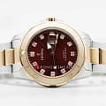 Яркий стиль и функциональность этих часов придутся по душе активной девушке. Кварцевый механизм с высокой точностью. Минеральное стеклоМинеральное стеклоМинеральное стекло представляет собой искусственно выращенный минерал кварца. Такое стекло отличается особой устойчивостью к повреждениям и царапинам. Уступает по некоторым качествам сапфировому стеклу. устойчивое к появлению царапин, обладающее высокой прозрачностью. Циферблат выполнен по технологии Sunray (солнечные лучи). Класс водозащиты: 100 метров, позволит плавать, нырять и заниматься другими водными видами спорта. Стрелки с люминесцентным покрытиемЛюминесцентное покрытиеПозволяет считывать показания времени в темноте. Производители наносят на стрелки, часовые индексы, безель или поверхность циферблата светонакопительный состав, дающий холодное свечение.. Корпус часов изготовлен из нержавеющей стали. БезельБезельВнешний ободок, закрепляющий стекло. В спортивных часах так называется поворотное кольцо с делениями на циферблате, выполняет роль таймера – замеряет отрезки времени на шкале. Неподвижный безель – элемент декора. Однонаправленно вращающийся безель на дайверских часах позволяет фиксировать моменты погружения и выныривания на поверхность. c PVD-покрытиемPVDУльтратонкое покрытие наносится в технике вакуумного напыления, сочетает в себе нитрид титана особой прочности со слоем золота или оксида хрома. Несёт в себе декоративную или защитную функцию.. Браслет с частичным PVD-покрытиемPVDУльтратонкое покрытие наносится в технике вакуумного напыления, сочетает в себе нитрид титана особой прочности со слоем золота или оксида хрома. Несёт в себе декоративную или защитную функцию. и с раскладной застёжкойРаскладная застёжкаТакой тип застёжки используется только на браслетах из металла. Она никогда не раскрывается полностью, происходит разделение на 2 и более частей. Раскладывающая застёжка снизит вероятность потери часов к минимуму..