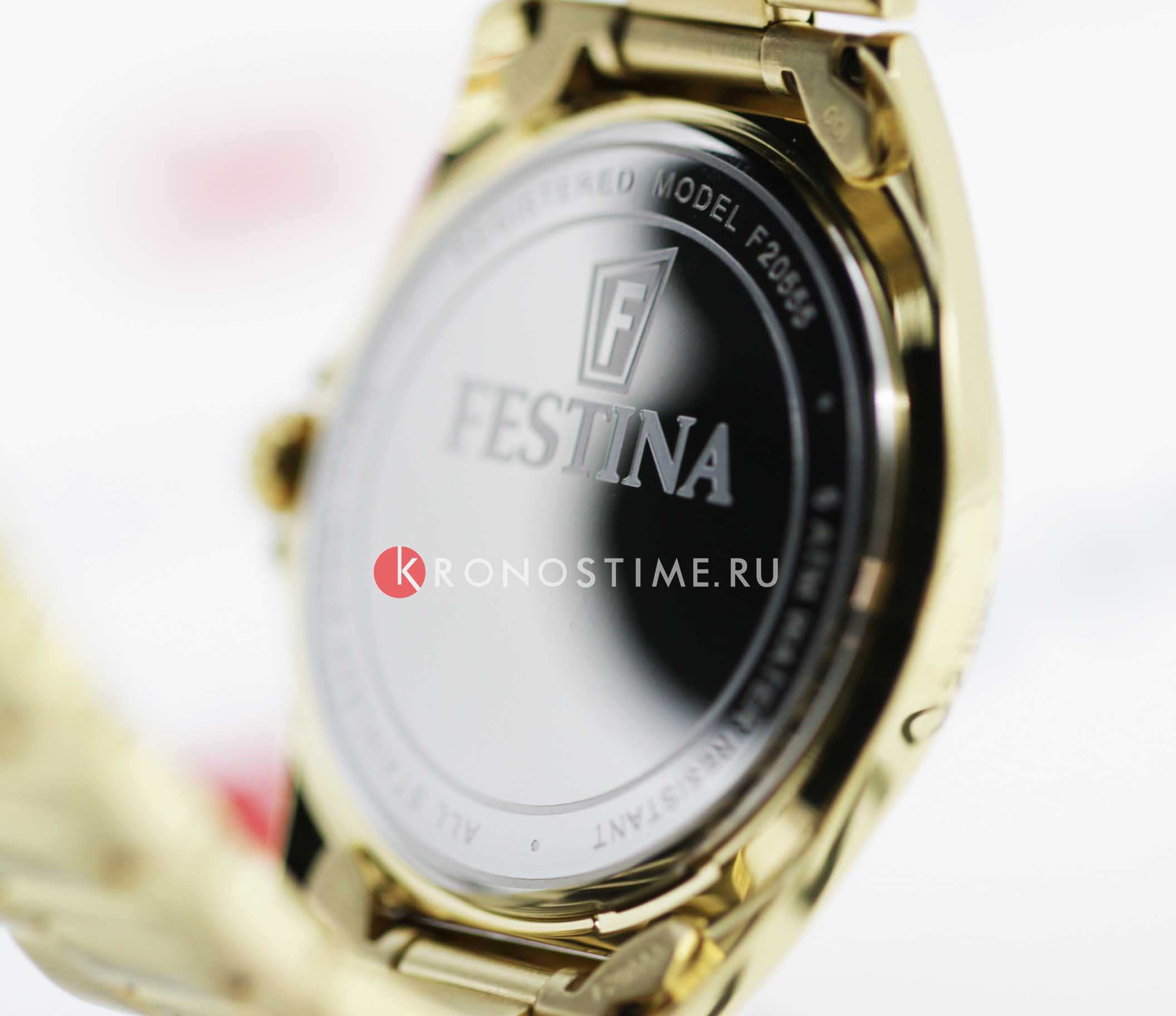 Наручные мужские часы с окошком даты Festina Clasico F20555/3, кварцевый механизм с высокой точностью, минеральное стеклоМинеральное стеклоМинеральное стекло представляет собой искусственно выращенный минерал кварца. Такое стекло отличается особой устойчивостью к повреждениям и царапинам. Уступает по некоторым качествам сапфировому стеклу.. Класс водозащиты: 50 метров, позволит защитить часы от случайных брызг воды. Корпус и браслет часов изготовлены из стали с PVDPVDУльтратонкое покрытие наносится в технике вакуумного напыления, сочетает в себе нитрид титана особой прочности со слоем золота или оксида хрома. Несёт в себе декоративную или защитную функцию. покрытием. Браслет на раскладной застёжкеРаскладная застёжкаТакой тип застёжки используется только на браслетах из металла. Она никогда не раскрывается полностью, происходит разделение на 2 и более частей. Раскладывающая застёжка снизит вероятность потери часов к минимуму.