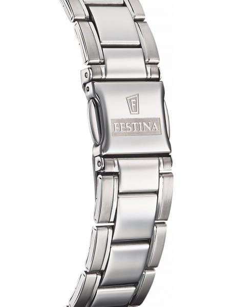 Наручные женские часы Festina Alegria F20622/3 с минеральным стекломМинеральное стеклоМинеральное стекло представляет собой искусственно выращенный минерал кварца. Такое стекло отличается особой устойчивостью к повреждениям и царапинам. Уступает по некоторым качествам сапфировому стеклу., кварцевый механизм с высокой точностью. "" устойчивое к потертостям. Класс водозащиты: 50 метров, позволит защитить корпус от случайных брызг или капель дождя. Корпус и браслет часов изготовлены из стали,серебристого цвета. Браслет на раскладной застёжкеРаскладная застёжкаТакой тип застёжки используется только на браслетах из металла. Она никогда не раскрывается полностью, происходит разделение на 2 и более частей. Раскладывающая застёжка снизит вероятность потери часов к минимуму..