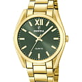 Наручные женские часы Festina Alegria F20640/2, кварцевый механизм с высокой точностью. Минеральное стеклоМинеральное стеклоМинеральное стекло представляет собой искусственно выращенный минерал кварца. Такое стекло отличается особой устойчивостью к повреждениям и царапинам. Уступает по некоторым качествам сапфировому стеклу. устойчивое к потертостям. Класс водозащиты: 50 метров, позволит защитить корпус от случайных брызг или капель дождя. Стрелки и метки с люминесцентным покрытиемЛюминесцентное покрытиеПозволяет считывать показания времени в темноте. Производители наносят на стрелки, часовые индексы, безель или поверхность циферблата светонакопительный состав, дающий холодное свечение.. Корпус и браслет часов изготовлены из стали с PVD-покрытиемPVDУльтратонкое покрытие наносится в технике вакуумного напыления, сочетает в себе нитрид титана особой прочности со слоем золота или оксида хрома. Несёт в себе декоративную или защитную функцию.. Браслет на раскладной застёжкеРаскладная застёжкаТакой тип застёжки используется только на браслетах из металла. Она никогда не раскрывается полностью, происходит разделение на 2 и более частей. Раскладывающая застёжка снизит вероятность потери часов к минимуму..
