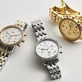 Женские американские часы-хронографХронографФункция позволяет измерять отрезки времени с особой точностью: часы, минуты, секунды. Верным признаком хронографа является наличие на циферблате 3 дополнительных окошек-счётчиков. с секундомеромСекундомерСекундоме́р — прибор, способный измерять интервалы времени с точностью до долей секунды. Fossil Neutra ES5217, кварцевый механизм с высокой точностью. Класс водозащиты: 50 метров, позволит защитить корпус от случайных брызг или капель дождя. Корпус часов изготовлен из стали. Стальной браслет с раскладной застёжкойРаскладная застёжкаТакой тип застёжки используется только на браслетах из металла. Она никогда не раскрывается полностью, происходит разделение на 2 и более частей. Раскладывающая застёжка снизит вероятность потери часов к минимуму.. Система отображения времени 12-ти и 24-х часового формата. БезельБезельВнешний ободок, закрепляющий стекло. В спортивных часах так называется поворотное кольцо с делениями на циферблате, выполняет роль таймера – замеряет отрезки времени на шкале. Неподвижный безель – элемент декора. Однонаправленно вращающийся безель на дайверских часах позволяет фиксировать моменты погружения и выныривания на поверхность. украшен кристаллами. Окошко даты между 4 и 5 часами. БезельБезельВнешний ободок, закрепляющий стекло. В спортивных часах так называется поворотное кольцо с делениями на циферблате, выполняет роль таймера – замеряет отрезки времени на шкале. Неподвижный безель – элемент декора. Однонаправленно вращающийся безель на дайверских часах позволяет фиксировать моменты погружения и выныривания на поверхность. инкрустирован кристаллами.