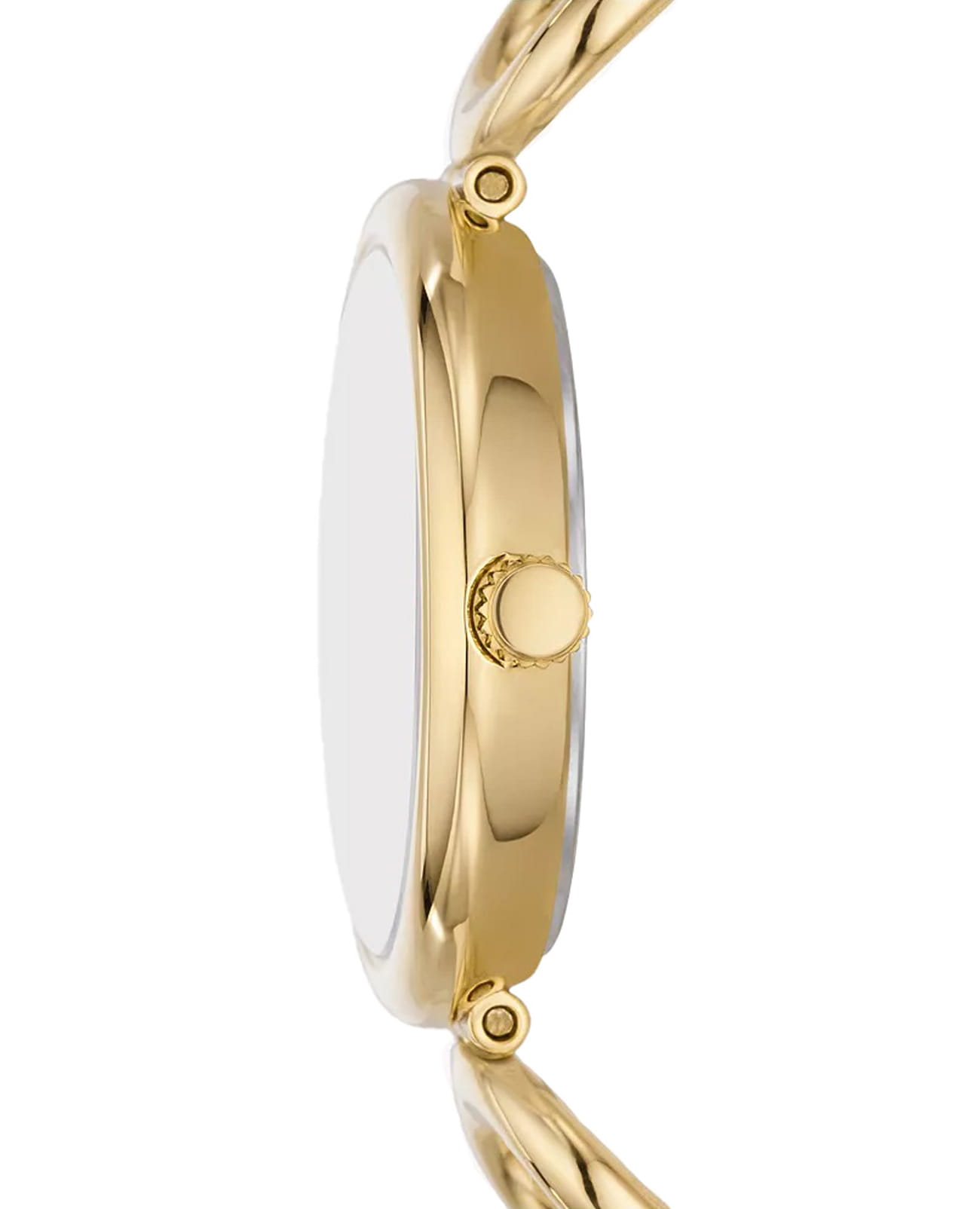 Женские американские часы с минеральным стекломМинеральное стеклоМинеральное стекло представляет собой искусственно выращенный минерал кварца. Такое стекло отличается особой устойчивостью к повреждениям и царапинам. Уступает по некоторым качествам сапфировому стеклу. Fossil Carlie ES5272, кварцевый механизм с высокой точностью. Корпус и браслет часов изготовлены из нержавеющей стали с IP-покрытиемIP-покрытиеМетод ионного напыления. Демонстрирует повышенную устойчивость к истиранию, окислению и химическим веществам. Под воздействием высокого давления и температуры около 1500°C молекулы металла надёжно соединяются с частицами корпуса часов.. Стрелки с люминесцентным покрытиемЛюминесцентное покрытиеПозволяет считывать показания времени в темноте. Производители наносят на стрелки, часовые индексы, безель или поверхность циферблата светонакопительный состав, дающий холодное свечение.. Рифленая заводная головка с защитой. Класс водозащиты: 50 метров, позволит защитить корпус от случайных брызг или капель дождя. Стальной браслет в виде звеньев на ювелирной застежке.
