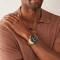 Мужские американские часы с минеральным стекломМинеральное стеклоМинеральное стекло представляет собой искусственно выращенный минерал кварца. Такое стекло отличается особой устойчивостью к повреждениям и царапинам. Уступает по некоторым качествам сапфировому стеклу. Fossil Blue FS5990, кварцевый механизм с высокой точностью. Корпус и браслет часов изготовлены из стали с IP-покрытиемIP-покрытиеМетод ионного напыления. Демонстрирует повышенную устойчивость к истиранию, окислению и химическим веществам. Под воздействием высокого давления и температуры около 1500°C молекулы металла надёжно соединяются с частицами корпуса часов.. БезельБезельВнешний ободок, закрепляющий стекло. В спортивных часах так называется поворотное кольцо с делениями на циферблате, выполняет роль таймера – замеряет отрезки времени на шкале. Неподвижный безель – элемент декора. Однонаправленно вращающийся безель на дайверских часах позволяет фиксировать моменты погружения и выныривания на поверхность. с IP-покрытиемIP-покрытиеМетод ионного напыления. Демонстрирует повышенную устойчивость к истиранию, окислению и химическим веществам. Под воздействием высокого давления и температуры около 1500°C молекулы металла надёжно соединяются с частицами корпуса часов.. Функция GMTGMTОтображение времени второго часового пояса.Такая функция особенно актуальна для путешественников и бизнесменов,которые общаются с людьми из разных стран,теперь вы всегда будете знать,какой час у вашего партнёра или близкого человека.. Окошко даты находится в положении 3 часа. Метки в виде точек и штрихов. Класс водозащиты: 100 метров, позволит плавать, нырять и заниматься другими водными видами спорта. Браслет на раскладной застёжкеРаскладная застёжкаТакой тип застёжки используется только на браслетах из металла. Она никогда не раскрывается полностью, происходит разделение на 2 и более частей. Раскладывающая застёжка снизит вероятность потери часов к минимуму..
