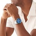 Мужские американские часы с минеральным стекломМинеральное стеклоМинеральное стекло представляет собой искусственно выращенный минерал кварца. Такое стекло отличается особой устойчивостью к повреждениям и царапинам. Уступает по некоторым качествам сапфировому стеклу. Fossil Blue FS5991, кварцевый механизм с высокой точностью. Корпус и браслет часов изготовлены из стали. БезельБезельВнешний ободок, закрепляющий стекло. В спортивных часах так называется поворотное кольцо с делениями на циферблате, выполняет роль таймера – замеряет отрезки времени на шкале. Неподвижный безель – элемент декора. Однонаправленно вращающийся безель на дайверских часах позволяет фиксировать моменты погружения и выныривания на поверхность. с IP-покрытиемIP-покрытиеМетод ионного напыления. Демонстрирует повышенную устойчивость к истиранию, окислению и химическим веществам. Под воздействием высокого давления и температуры около 1500°C молекулы металла надёжно соединяются с частицами корпуса часов.. Функция GMTGMTОтображение времени второго часового пояса.Такая функция особенно актуальна для путешественников и бизнесменов,которые общаются с людьми из разных стран,теперь вы всегда будете знать,какой час у вашего партнёра или близкого человека.. Окошко даты находится в положении 3 часа. Метки в виде точек и штрихов. Класс водозащиты: 100 метров, позволит плавать, нырять и заниматься другими водными видами спорта. Браслет на раскладной застёжкеРаскладная застёжкаТакой тип застёжки используется только на браслетах из металла. Она никогда не раскрывается полностью, происходит разделение на 2 и более частей. Раскладывающая застёжка снизит вероятность потери часов к минимуму..