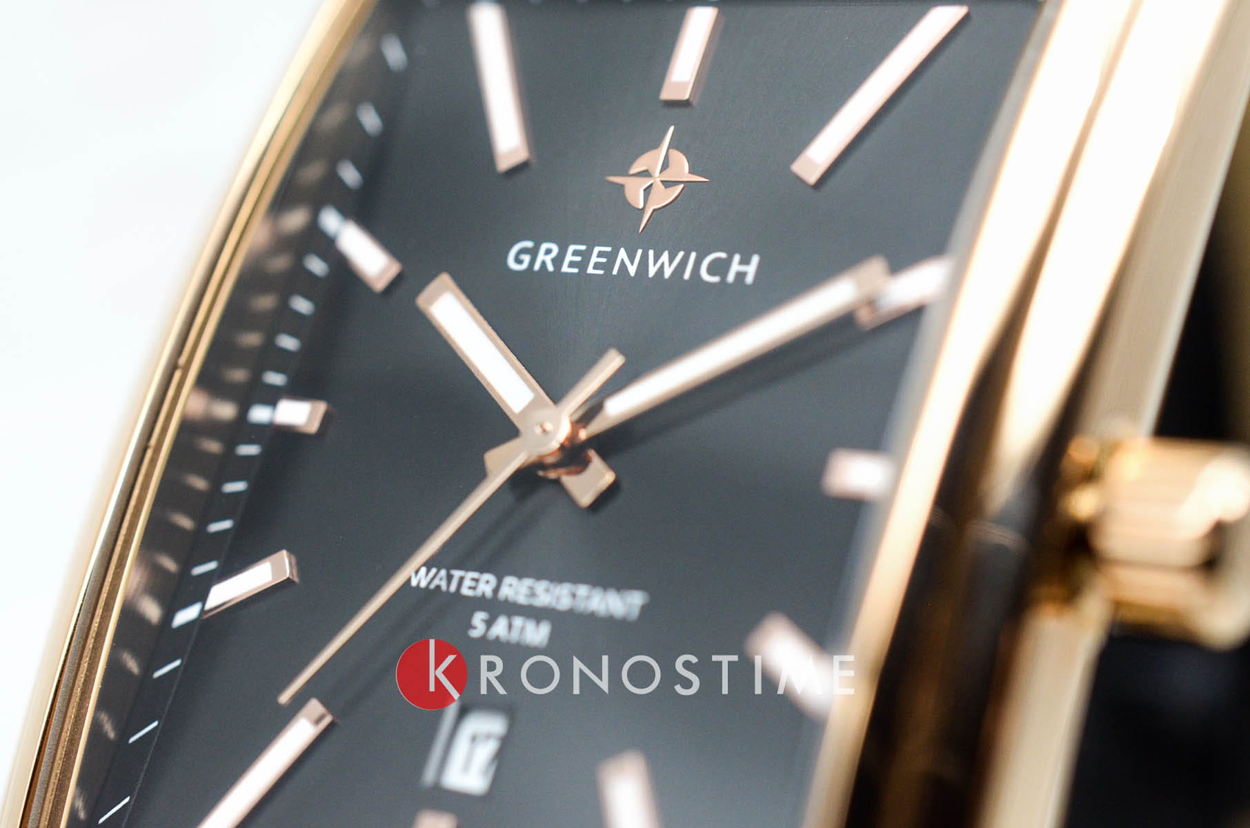 Часы Greenwich GW 571.41.11 из коллекции Galeon — элегантная мужская модель, сочетающая классический дизайн и современные технологии. Корпус размером 33 x 40 мм выполнен из гипоаллергенной нержавеющей стали с PVD-покрытиемPVDУльтратонкое покрытие наносится в технике вакуумного напыления, сочетает в себе нитрид титана особой прочности со слоем золота или оксида хрома. Несёт в себе декоративную или защитную функцию. из розового золота. Чёрный циферблат с крупными стрелками, покрытыми люминесцентным составом, защищён минеральным стекломМинеральное стеклоМинеральное стекло представляет собой искусственно выращенный минерал кварца. Такое стекло отличается особой устойчивостью к повреждениям и царапинам. Уступает по некоторым качествам сапфировому стеклу.. Окошко даты расположено в позиции «6 часов».