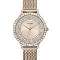Наручные часы Guess Dress Steel GW0402L3 — изысканный аксессуар, сочетающий в себе элегантность и современный стиль. Круглый корпус диаметром 38 мм из стали с IP-покрытиемIP-покрытиеМетод ионного напыления. Демонстрирует повышенную устойчивость к истиранию, окислению и химическим веществам. Под воздействием высокого давления и температуры около 1500°C молекулы металла надёжно соединяются с частицами корпуса часов. цвета розового золота придает часам прочность и устойчивость к износу, обеспечивая их привлекательный внешний вид на долгие годы. Циферблат и безельБезельВнешний ободок, закрепляющий стекло. В спортивных часах так называется поворотное кольцо с делениями на циферблате, выполняет роль таймера – замеряет отрезки времени на шкале. Неподвижный безель – элемент декора. Однонаправленно вращающийся безель на дайверских часах позволяет фиксировать моменты погружения и выныривания на поверхность. украшены кристаллами, что придает часам утонченность и изысканность. Минеральное стеклоМинеральное стеклоМинеральное стекло представляет собой искусственно выращенный минерал кварца. Такое стекло отличается особой устойчивостью к повреждениям и царапинам. Уступает по некоторым качествам сапфировому стеклу. защищает циферблат от царапин и других повреждений. Рифленая заводная головка обеспечивает удобство в использовании и подчеркивает внимание к деталям. Часы оснащены стальным браслетом с золотистым IP-покрытиемIP-покрытиеМетод ионного напыления. Демонстрирует повышенную устойчивость к истиранию, окислению и химическим веществам. Под воздействием высокого давления и температуры около 1500°C молекулы металла надёжно соединяются с частицами корпуса часов., который обеспечивает надежность и комфорт. Раскладная замокРаскладная застёжкаТакой тип застёжки используется только на браслетах из металла. Она никогда не раскрывается полностью, происходит разделение на 2 и более частей. Раскладывающая застёжка снизит вероятность потери часов к минимуму. гарантирует легкость и безопасность при ношении. Водозащита уровня 30WR защищает часы от случайных брызг, делая их подходящими для повседневного использования.