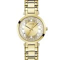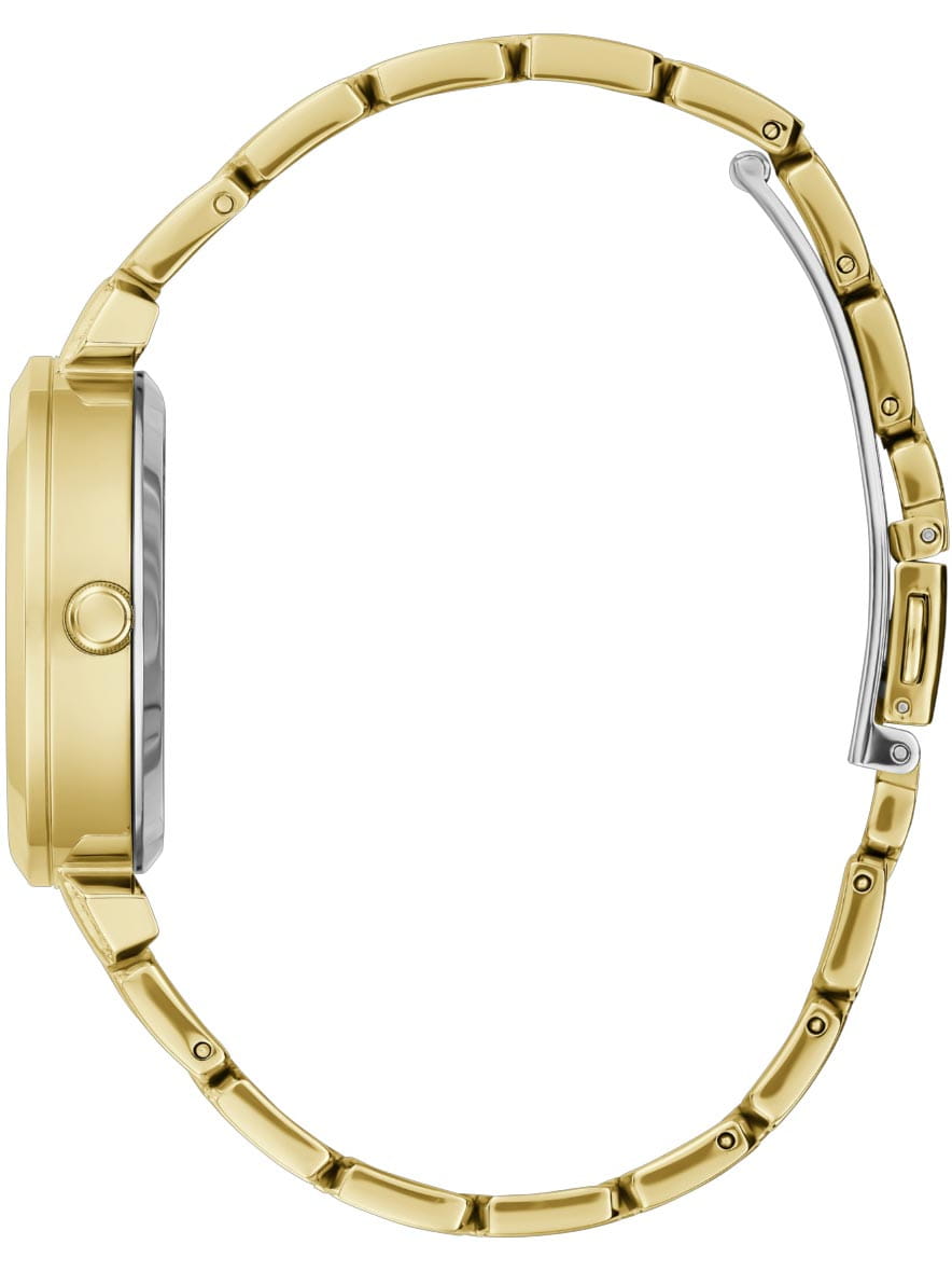 Женские наручные часы Guess GW0470L2 с минеральным стекломМинеральное стеклоМинеральное стекло представляет собой искусственно выращенный минерал кварца. Такое стекло отличается особой устойчивостью к повреждениям и царапинам. Уступает по некоторым качествам сапфировому стеклу., кварцевый механизм с высокой точностью. Класс водозащиты: 30 метров, позволит защитить корпус от случайных брызг или капель дождя. Корпус часов изготовлен из стали с IP-покрытиемIP-покрытиеМетод ионного напыления. Демонстрирует повышенную устойчивость к истиранию, окислению и химическим веществам. Под воздействием высокого давления и температуры около 1500°C молекулы металла надёжно соединяются с частицами корпуса часов.. Браслет с раскладной застёжкойРаскладная застёжкаТакой тип застёжки используется только на браслетах из металла. Она никогда не раскрывается полностью, происходит разделение на 2 и более частей. Раскладывающая застёжка снизит вероятность потери часов к минимуму.