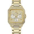 Женские наручные часы Guess Deco GW0472L2 с минеральным стекломМинеральное стеклоМинеральное стекло представляет собой искусственно выращенный минерал кварца. Такое стекло отличается особой устойчивостью к повреждениям и царапинам. Уступает по некоторым качествам сапфировому стеклу., кварцевый механизм с высокой точностью. Класс водозащиты: 30 метров, позволит защитить корпус от случайных брызг или капель дождя. Корпус часов изготовлен из стали с IP-покрытиемIP-покрытиеМетод ионного напыления. Демонстрирует повышенную устойчивость к истиранию, окислению и химическим веществам. Под воздействием высокого давления и температуры около 1500°C молекулы металла надёжно соединяются с частицами корпуса часов.. Браслет с раскладной застёжкойРаскладная застёжкаТакой тип застёжки используется только на браслетах из металла. Она никогда не раскрывается полностью, происходит разделение на 2 и более частей. Раскладывающая застёжка снизит вероятность потери часов к минимуму. с IP-покрытиемIP-покрытиеМетод ионного напыления. Демонстрирует повышенную устойчивость к истиранию, окислению и химическим веществам. Под воздействием высокого давления и температуры около 1500°C молекулы металла надёжно соединяются с частицами корпуса часов.. 12-ти и 24-х часовой формат времени, число и день недели вынесены на отдельные циферблаты. Метки в виде точек и арабских цифр. Рифленая заводная головка с защитой. Стрелки с люминесцентным покрытиемЛюминесцентное покрытиеПозволяет считывать показания времени в темноте. Производители наносят на стрелки, часовые индексы, безель или поверхность циферблата светонакопительный состав, дающий холодное свечение..