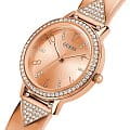 Женские наручные часы Guess Dress Steel GW0474L3 с минеральным стекломМинеральное стеклоМинеральное стекло представляет собой искусственно выращенный минерал кварца. Такое стекло отличается особой устойчивостью к повреждениям и царапинам. Уступает по некоторым качествам сапфировому стеклу., кварцевый механизм с высокой точностью. Класс водозащиты: 30 метров, позволит защитить корпус от случайных брызг или капель дождя. Корпус часов изготовлен из стали с IP-покрытиемIP-покрытиеМетод ионного напыления. Демонстрирует повышенную устойчивость к истиранию, окислению и химическим веществам. Под воздействием высокого давления и температуры около 1500°C молекулы металла надёжно соединяются с частицами корпуса часов.. Браслет с раскладной застёжкойРаскладная застёжкаТакой тип застёжки используется только на браслетах из металла. Она никогда не раскрывается полностью, происходит разделение на 2 и более частей. Раскладывающая застёжка снизит вероятность потери часов к минимуму.
