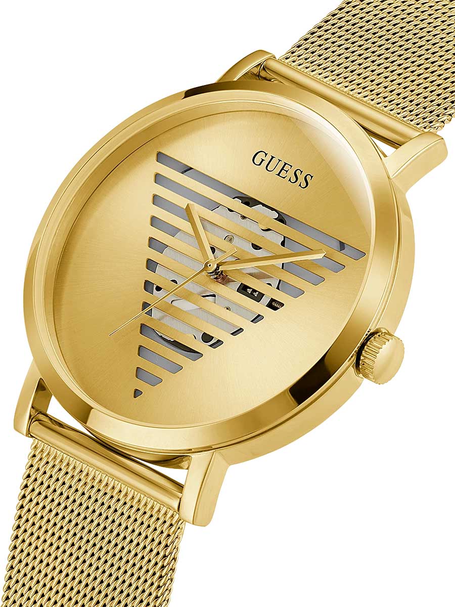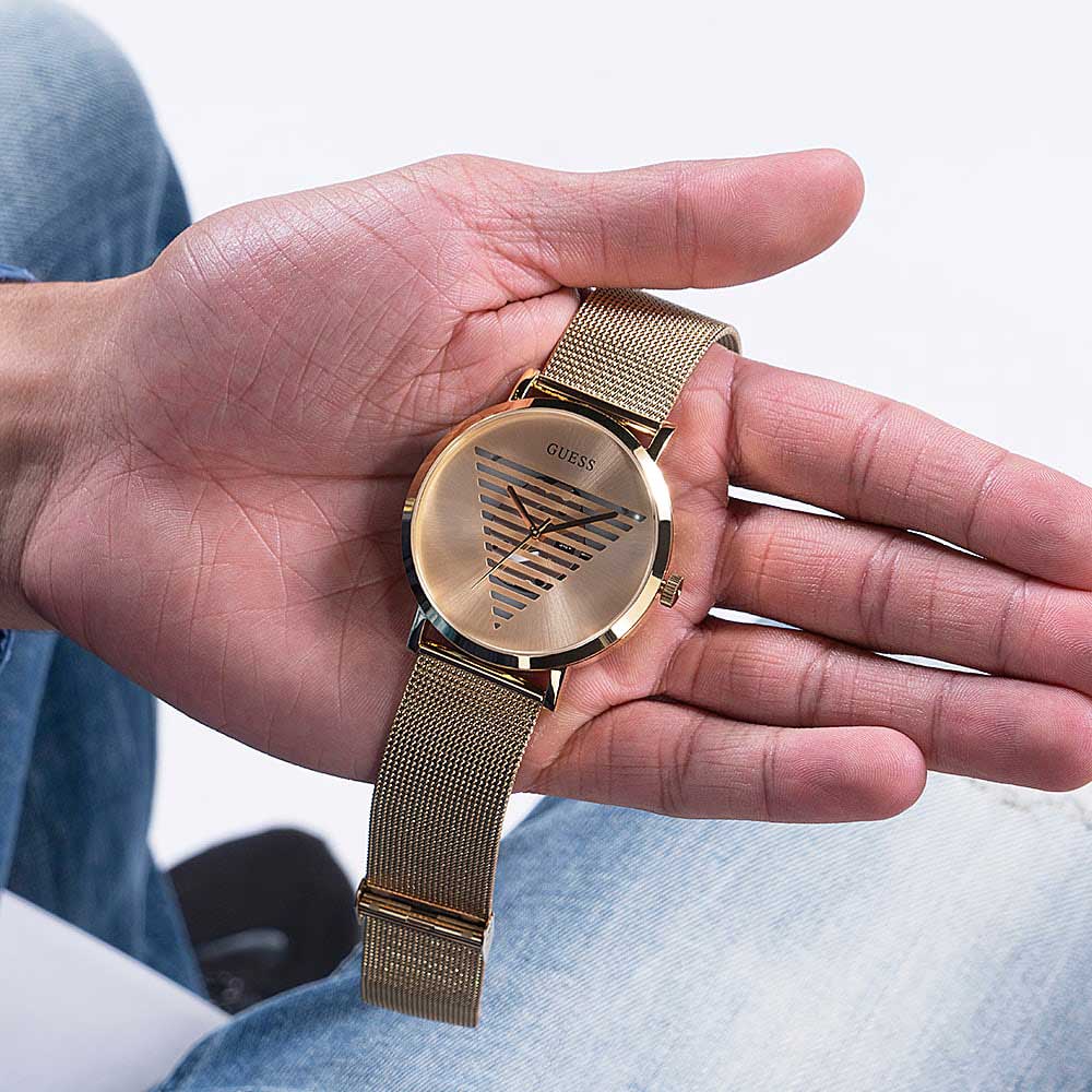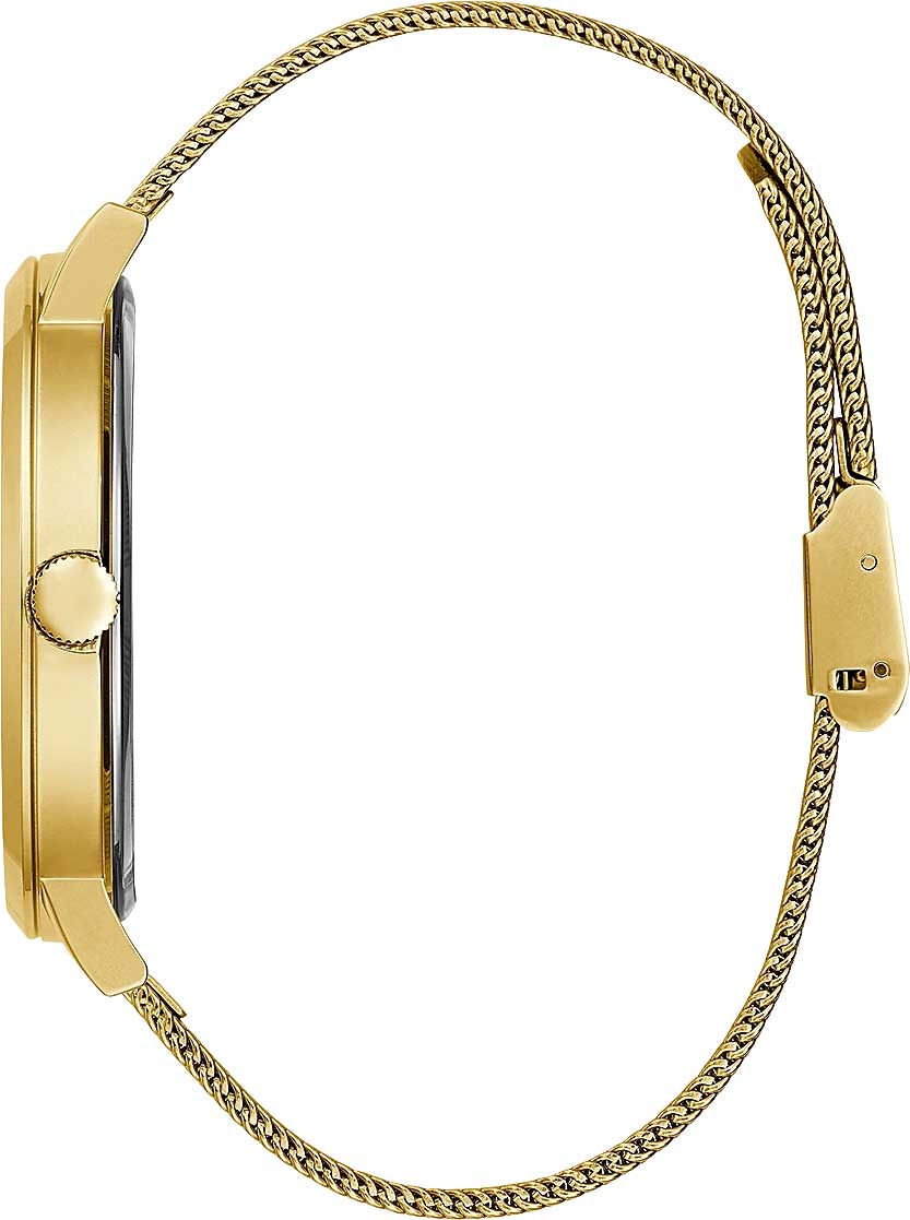 Мужские наручные часы Guess Trend GW0502G1 с минеральным стекломМинеральное стеклоМинеральное стекло представляет собой искусственно выращенный минерал кварца. Такое стекло отличается особой устойчивостью к повреждениям и царапинам. Уступает по некоторым качествам сапфировому стеклу., кварцевый механизм с высокой точностью. Класс водозащиты: 30 метров, позволит защитить корпус от случайных брызг или капель дождя. Корпус часов изготовлен из стали с IP-покрытиемIP-покрытиеМетод ионного напыления. Демонстрирует повышенную устойчивость к истиранию, окислению и химическим веществам. Под воздействием высокого давления и температуры около 1500°C молекулы металла надёжно соединяются с частицами корпуса часов.. Браслет на миланском плетении с IP-покрытиемIP-покрытиеМетод ионного напыления. Демонстрирует повышенную устойчивость к истиранию, окислению и химическим веществам. Под воздействием высокого давления и температуры около 1500°C молекулы металла надёжно соединяются с частицами корпуса часов. и с раскладной застёжкойРаскладная застёжкаТакой тип застёжки используется только на браслетах из металла. Она никогда не раскрывается полностью, происходит разделение на 2 и более частей. Раскладывающая застёжка снизит вероятность потери часов к минимуму..
