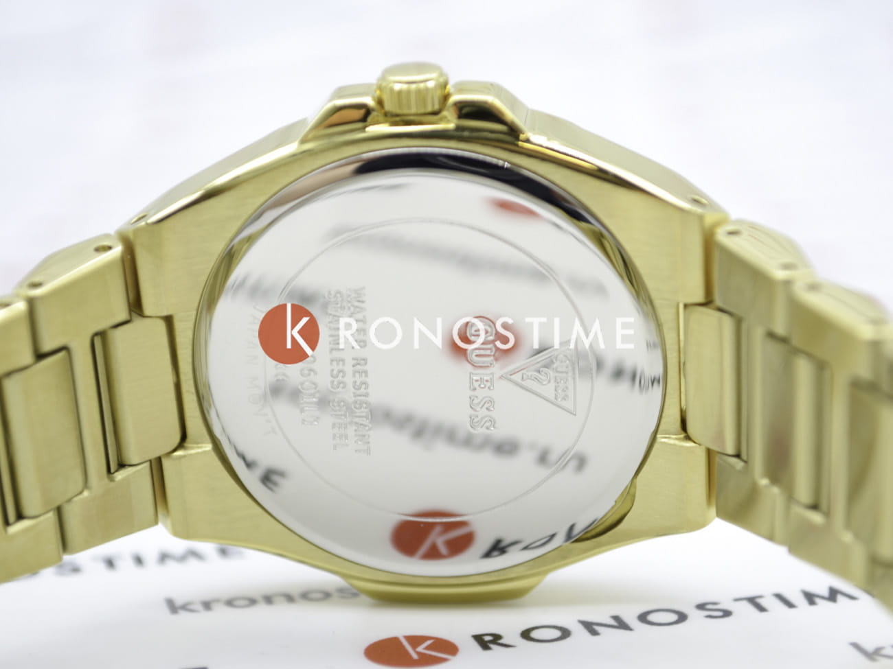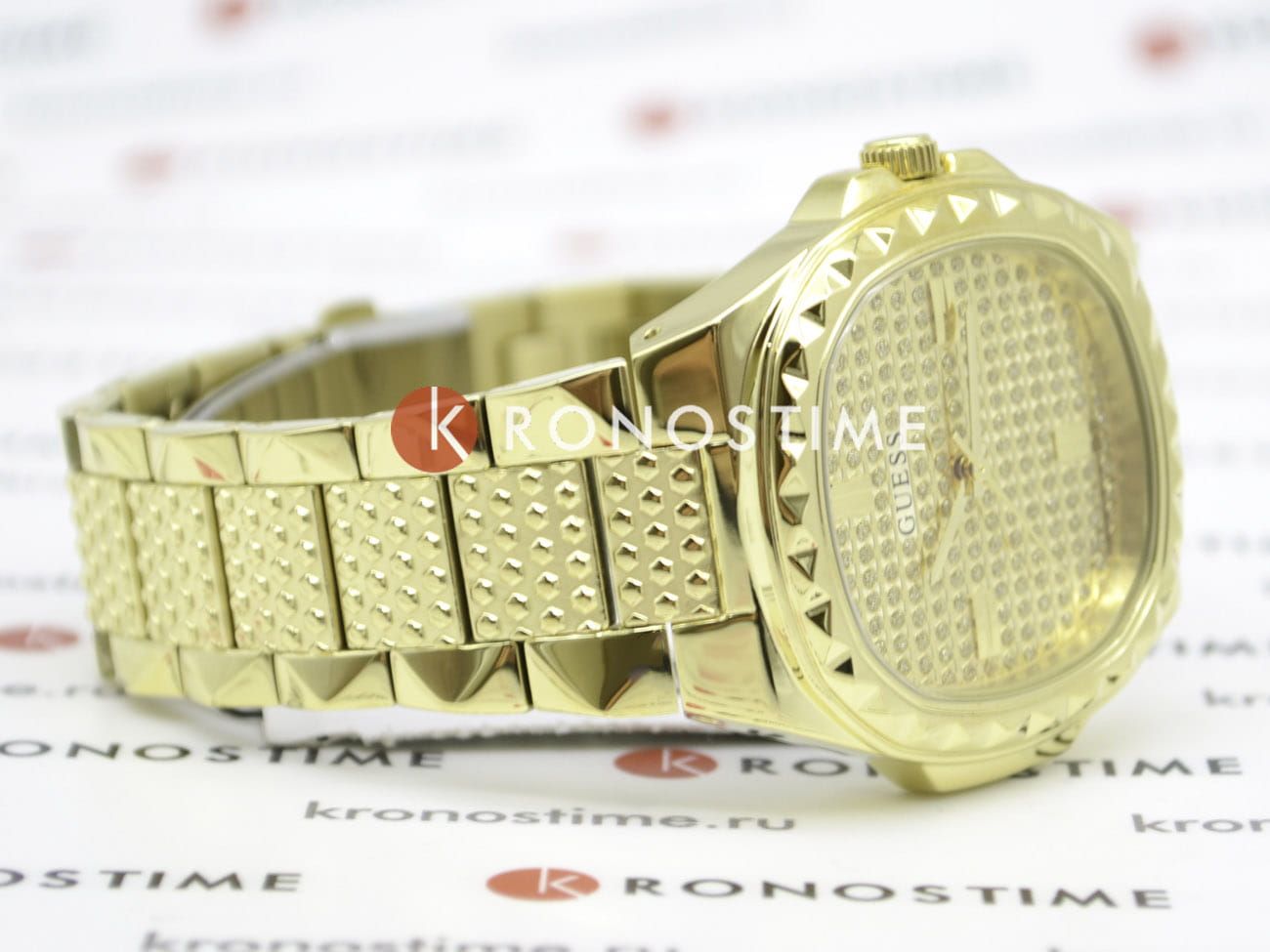 Женские наручные часы с минеральным стекломМинеральное стеклоМинеральное стекло представляет собой искусственно выращенный минерал кварца. Такое стекло отличается особой устойчивостью к повреждениям и царапинам. Уступает по некоторым качествам сапфировому стеклу. Guess Lady Idol GW0601L1, кварцевый механизм с высокой точностью. Класс водозащиты: 30 метров, позволит защитить корпус от случайных брызг или капель дождя. Корпус часов изготовлен из стали с IP-покрытиемIP-покрытиеМетод ионного напыления. Демонстрирует повышенную устойчивость к истиранию, окислению и химическим веществам. Под воздействием высокого давления и температуры около 1500°C молекулы металла надёжно соединяются с частицами корпуса часов.. Стальной браслет на раскладной застёжкеРаскладная застёжкаТакой тип застёжки используется только на браслетах из металла. Она никогда не раскрывается полностью, происходит разделение на 2 и более частей. Раскладывающая застёжка снизит вероятность потери часов к минимуму. с IP-покрытиемIP-покрытиеМетод ионного напыления. Демонстрирует повышенную устойчивость к истиранию, окислению и химическим веществам. Под воздействием высокого давления и температуры около 1500°C молекулы металла надёжно соединяются с частицами корпуса часов.. БезельБезельВнешний ободок, закрепляющий стекло. В спортивных часах так называется поворотное кольцо с делениями на циферблате, выполняет роль таймера – замеряет отрезки времени на шкале. Неподвижный безель – элемент декора. Однонаправленно вращающийся безель на дайверских часах позволяет фиксировать моменты погружения и выныривания на поверхность. инкрустирован кристаллами.