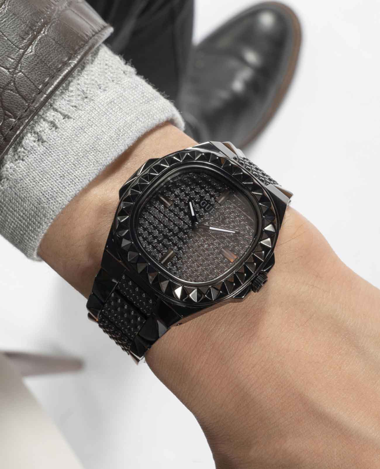 Мужские наручные часы с минеральным стекломМинеральное стеклоМинеральное стекло представляет собой искусственно выращенный минерал кварца. Такое стекло отличается особой устойчивостью к повреждениям и царапинам. Уступает по некоторым качествам сапфировому стеклу. Guess Trend GW0622G2, кварцевый механизм с высокой точностью. Корпус часов изготовлен из стали с IP-покрытиемIP-покрытиеМетод ионного напыления. Демонстрирует повышенную устойчивость к истиранию, окислению и химическим веществам. Под воздействием высокого давления и температуры около 1500°C молекулы металла надёжно соединяются с частицами корпуса часов.. Циферблат украшен кристаллами. Стрелки с люминесцентным покрытиемЛюминесцентное покрытиеПозволяет считывать показания времени в темноте. Производители наносят на стрелки, часовые индексы, безель или поверхность циферблата светонакопительный состав, дающий холодное свечение.. Класс водозащиты: 30 метров, позволит защитить корпус от случайных брызг или капель дождя. Стальной браслет с IP-покрытиемIP-покрытиеМетод ионного напыления. Демонстрирует повышенную устойчивость к истиранию, окислению и химическим веществам. Под воздействием высокого давления и температуры около 1500°C молекулы металла надёжно соединяются с частицами корпуса часов. на раскладной застёжкеРаскладная застёжкаТакой тип застёжки используется только на браслетах из металла. Она никогда не раскрывается полностью, происходит разделение на 2 и более частей. Раскладывающая застёжка снизит вероятность потери часов к минимуму..