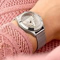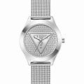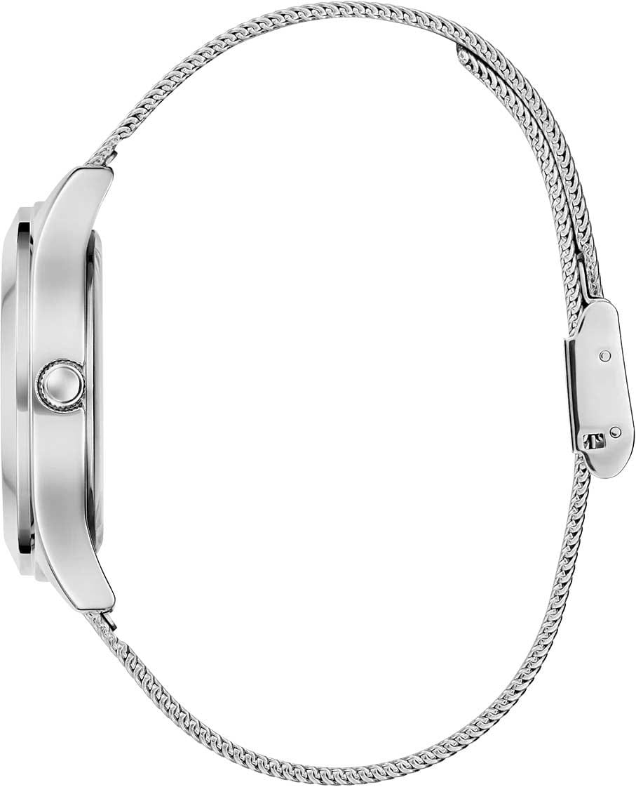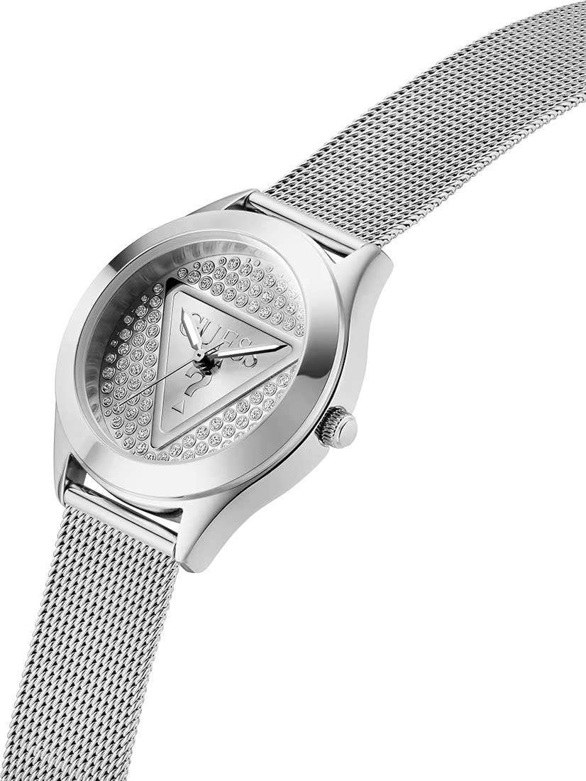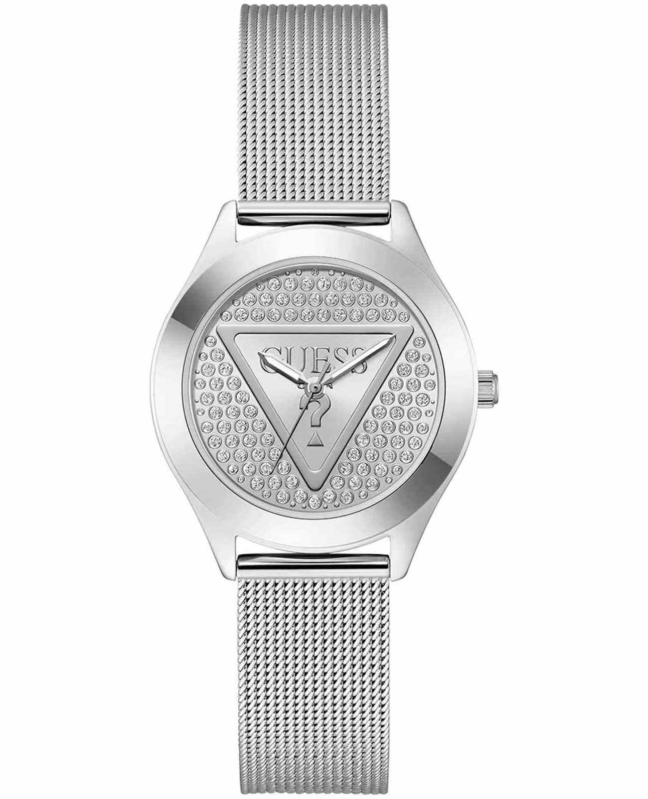 Часы Guess GW0835L1 — это изысканный аксессуар, который добавит вашему современному образу нотку гламура и элегантности. Часы оснащены надежным кварцевым механизмом, который обеспечивает точность и долговечность. Круглый стальной корпус с полированной поверхностью диаметром 34 мм придает часам стильный и современный вид. Серебристый циферблат, украшенный кристаллами и логотипом компании, создает утонченное и изысканное впечатление. Люминесцентное покрытиеЛюминесцентное покрытиеПозволяет считывать показания времени в темноте. Производители наносят на стрелки, часовые индексы, безель или поверхность циферблата светонакопительный состав, дающий холодное свечение. на стрелках обеспечивает отличную видимость в темноте. Часы оснащены рифленой заводной головкой для удобного управления. Стальной браслет миланского плетения с раскладным замкомРаскладной замокДанный вариант застежки используется только на часах с металлическим браслетом. Отличительная особенность такого крепления в том, что длина браслета становится универсальной и вы можете самостоятельно отрегулировать нужный вам размер – застежка просто двигается по браслету часов. обеспечивает комфортное ношение и надежную фиксацию на запястье. Водозащита 30WR позволяет часам выдерживать случайные брызги, а минеральное стеклоМинеральное стеклоМинеральное стекло представляет собой искусственно выращенный минерал кварца. Такое стекло отличается особой устойчивостью к повреждениям и царапинам. Уступает по некоторым качествам сапфировому стеклу. защищает циферблат от царапин. Эта модель станет идеальным аксессуаром для ежедневного использования и особых мероприятий, подчеркивая вашу индивидуальность и стиль.