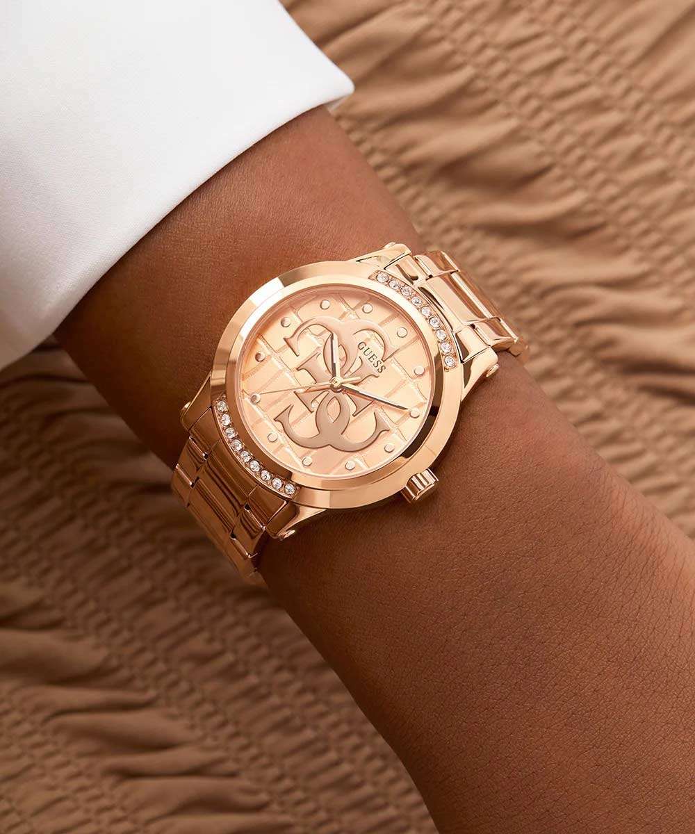 Эти изысканные часы Guess GW0861L3 созданы для уверенных в себе и успешных женщин, стремящихся подчеркнуть свою элегантность и стиль. Часы оснащены надежным кварцевым механизмом, который обеспечивает точность и долговечность. Корпус часов из нержавеющей стали с IP-покрытиемIP-покрытиеМетод ионного напыления. Демонстрирует повышенную устойчивость к истиранию, окислению и химическим веществам. Под воздействием высокого давления и температуры около 1500°C молекулы металла надёжно соединяются с частицами корпуса часов. цвета розового золота, а безельБезельВнешний ободок, закрепляющий стекло. В спортивных часах так называется поворотное кольцо с делениями на циферблате, выполняет роль таймера – замеряет отрезки времени на шкале. Неподвижный безель – элемент декора. Однонаправленно вращающийся безель на дайверских часах позволяет фиксировать моменты погружения и выныривания на поверхность. с IP-покрытиемIP-покрытиеМетод ионного напыления. Демонстрирует повышенную устойчивость к истиранию, окислению и химическим веществам. Под воздействием высокого давления и температуры около 1500°C молекулы металла надёжно соединяются с частицами корпуса часов. цвета розового золота украшен кристаллами, придающими модели особый блеск и роскошь. Золотистый циферблат с фактурной поверхностью и метками в виде точек добавляет индивидуальность и изящество. Люминесцентное покрытиеЛюминесцентное покрытиеПозволяет считывать показания времени в темноте. Производители наносят на стрелки, часовые индексы, безель или поверхность циферблата светонакопительный состав, дающий холодное свечение. на стрелках обеспечивает отличную видимость в темноте. Рифленая заводная головка с защитой обеспечивает удобное управление. Стальной браслет с IP-покрытиемIP-покрытиеМетод ионного напыления. Демонстрирует повышенную устойчивость к истиранию, окислению и химическим веществам. Под воздействием высокого давления и температуры около 1500°C молекулы металла надёжно соединяются с частицами корпуса часов. цвета розового золота и с раскладной застежкойРаскладная застёжкаТакой тип застёжки используется только на браслетах из металла. Она никогда не раскрывается полностью, происходит разделение на 2 и более частей. Раскладывающая застёжка снизит вероятность потери часов к минимуму. гарантирует комфортное ношение и надежную фиксацию на запястье. Часы обладают водозащитой 30WR, что делает их устойчивыми к случайным брызгам. Минеральное стеклоМинеральное стеклоМинеральное стекло представляет собой искусственно выращенный минерал кварца. Такое стекло отличается особой устойчивостью к повреждениям и царапинам. Уступает по некоторым качествам сапфировому стеклу. защищает циферблат от царапин и других повреждений. Эта модель станет идеальным аксессуаром для повседневного использования и особых мероприятий, подчеркивая вашу индивидуальность и неповторимость в любой ситуации.