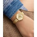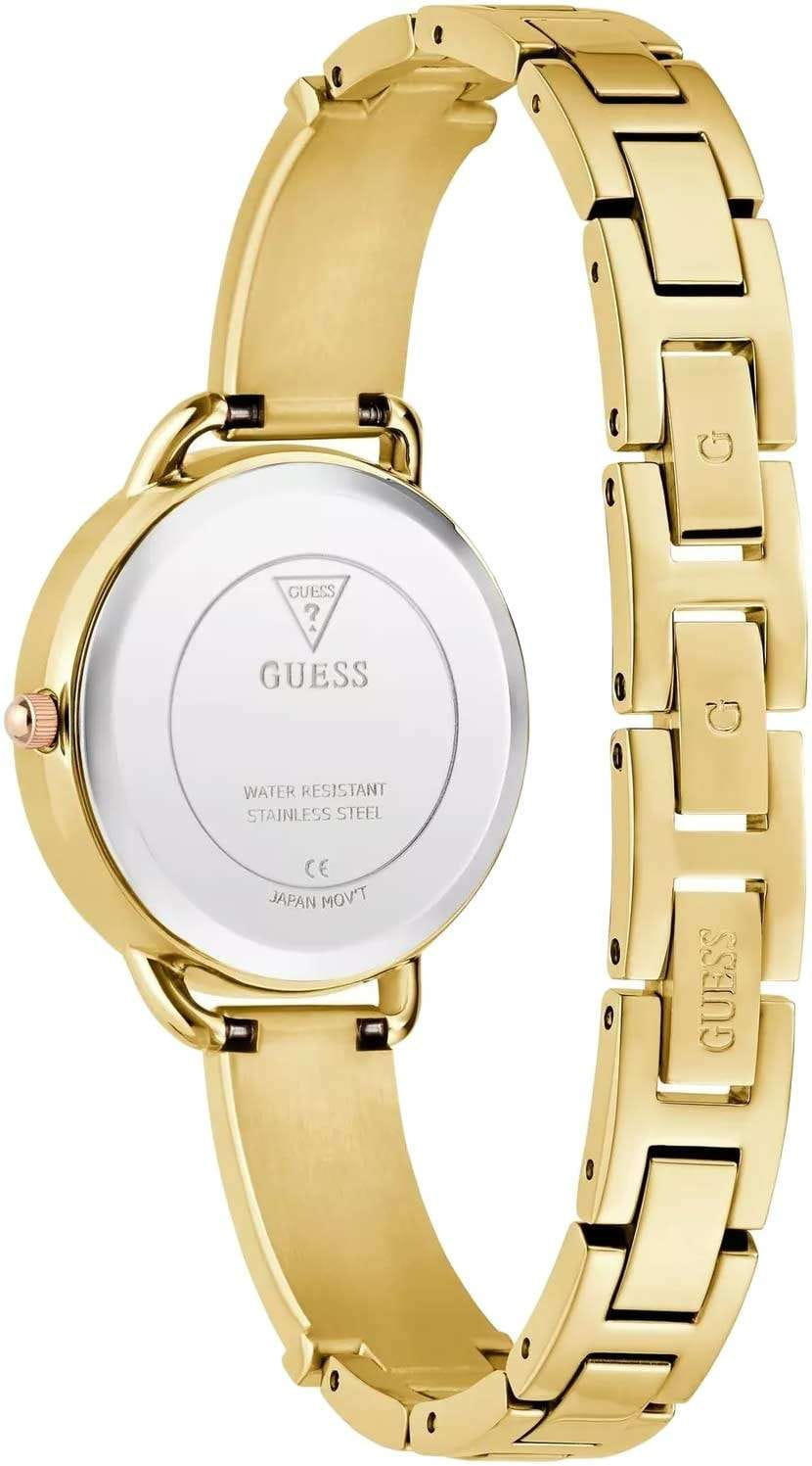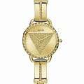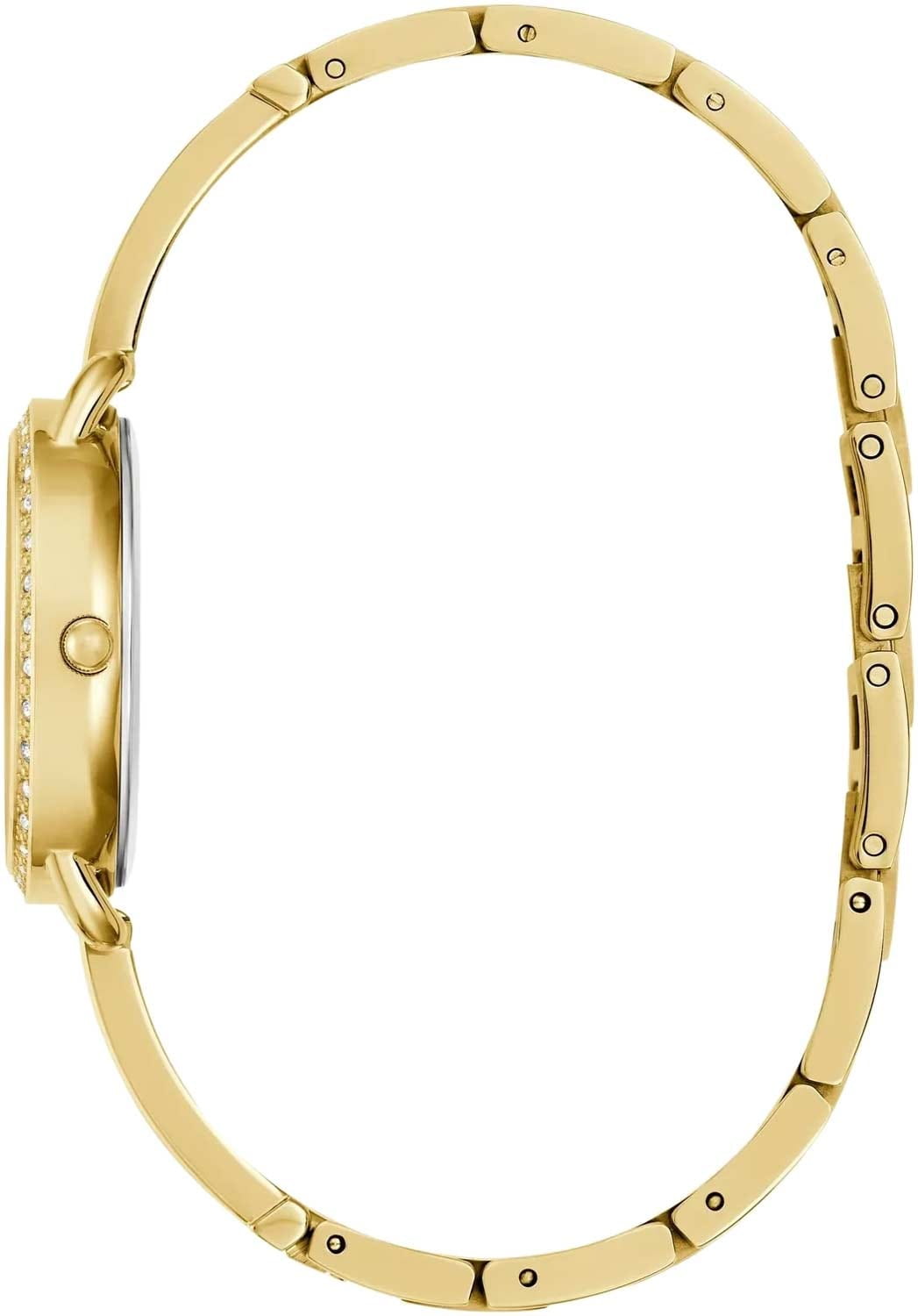 Часы Guess GW0914L2 — это стильный аксессуар, который подчеркивает современность и элегантность. Эти часы оснащены надежным кварцевым механизмом. Они имеют круглый корпус из нержавеющей стали с золотистым IP-покрытиемIP-покрытиеМетод ионного напыления. Демонстрирует повышенную устойчивость к истиранию, окислению и химическим веществам. Под воздействием высокого давления и температуры около 1500°C молекулы металла надёжно соединяются с частицами корпуса часов., что придает им прочность и долговечность. Основное внимание привлекает безельБезельВнешний ободок, закрепляющий стекло. В спортивных часах так называется поворотное кольцо с делениями на циферблате, выполняет роль таймера – замеряет отрезки времени на шкале. Неподвижный безель – элемент декора. Однонаправленно вращающийся безель на дайверских часах позволяет фиксировать моменты погружения и выныривания на поверхность., украшенный кристальным паве, создающим эффектный блеск. Золотистый циферблат выполнен по технологии Sunray, что придает ему эффект солнечных лучей. Центр циферблата украшен глиттерным треугольником и логотипом GUESS, что добавляет уникальности и изысканности дизайну. Минеральное стеклоМинеральное стеклоМинеральное стекло представляет собой искусственно выращенный минерал кварца. Такое стекло отличается особой устойчивостью к повреждениям и царапинам. Уступает по некоторым качествам сапфировому стеклу. защищает циферблат от внешних воздействий. Стальной браслет с золотистым IP-покрытиемIP-покрытиеМетод ионного напыления. Демонстрирует повышенную устойчивость к истиранию, окислению и химическим веществам. Под воздействием высокого давления и температуры около 1500°C молекулы металла надёжно соединяются с частицами корпуса часов. также с ювелирной застежкой украшен кристаллами, что создает гармоничный и завершенный образ. Часы имеют водозащиту уровня 30WR, что позволяет им выдерживать случайные брызги воды. Этот аксессуар идеально подходит для тех, кто ценит стиль и качество в каждой детали.