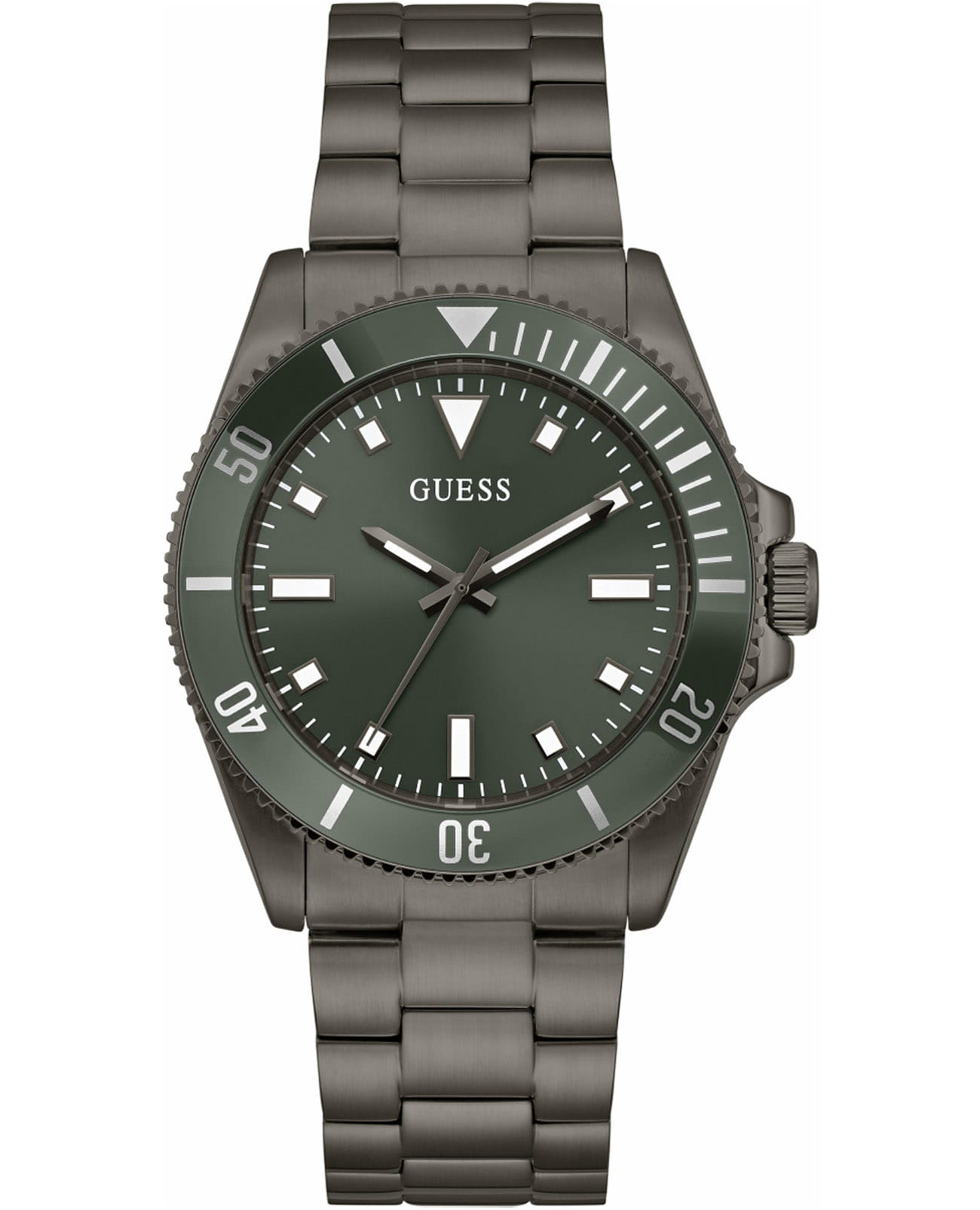 Часы Guess Sport Cliff GW0968G3 — это изысканный аксессуар, который добавит вашему современному образу нотку гламура и элегантности. Часы оснащены надежным кварцевым механизмом, который обеспечивает точность и долговечность. Круглый стальной корпус с IP-покрытиемIP-покрытиеМетод ионного напыления. Демонстрирует повышенную устойчивость к истиранию, окислению и химическим веществам. Под воздействием высокого давления и температуры около 1500°C молекулы металла надёжно соединяются с частицами корпуса часов. диаметром 41 мм и с поворотным безелемБезельВнешний ободок, закрепляющий стекло. В спортивных часах так называется поворотное кольцо с делениями на циферблате, выполняет роль таймера – замеряет отрезки времени на шкале. Неподвижный безель – элемент декора. Однонаправленно вращающийся безель на дайверских часах позволяет фиксировать моменты погружения и выныривания на поверхность.  придает часам стильный и современный вид. Циферблат создает утонченное и изысканное впечатление. Люминесцентное покрытиеЛюминесцентное покрытиеПозволяет считывать показания времени в темноте. Производители наносят на стрелки, часовые индексы, безель или поверхность циферблата светонакопительный состав, дающий холодное свечение. на часах обеспечивает отличную видимость в темноте. Часы оснащены рифленой заводной головкой для удобного управления.Стальной браслет с IP-покрытиемIP-покрытиеМетод ионного напыления. Демонстрирует повышенную устойчивость к истиранию, окислению и химическим веществам. Под воздействием высокого давления и температуры около 1500°C молекулы металла надёжно соединяются с частицами корпуса часов. на раскладной застёжкеРаскладная застёжкаТакой тип застёжки используется только на браслетах из металла. Она никогда не раскрывается полностью, происходит разделение на 2 и более частей. Раскладывающая застёжка снизит вероятность потери часов к минимуму. добавляет модели элегантности и удобства, подчеркивая вашу индивидуальность и стиль. Водозащита 50WR позволит мыть руки или гулять под дождем, не опасаясь того, что в корпус попадет вода, а минеральное стеклоМинеральное стеклоМинеральное стекло представляет собой искусственно выращенный минерал кварца. Такое стекло отличается особой устойчивостью к повреждениям и царапинам. Уступает по некоторым качествам сапфировому стеклу. защищает циферблат от царапин. Эта модель станет идеальным аксессуаром для ежедневного использования и особых мероприятий, подчеркивая вашу индивидуальность и стиль.