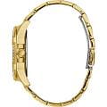 Женские наручные часы Guess Sport W0025L2 — изысканный аксессуар, сочетающий в себе элегантность и современный стиль. Круглый корпус из стали с золотистым IP-покрытиемIP-покрытиеМетод ионного напыления. Демонстрирует повышенную устойчивость к истиранию, окислению и химическим веществам. Под воздействием высокого давления и температуры около 1500°C молекулы металла надёжно соединяются с частицами корпуса часов., диаметром 28 мм придает часам прочность и устойчивость к износу, обеспечивая их привлекательный внешний вид на долгие годы. Циферблат украшен метками в виде штрихов, что придает часам утонченность и изысканность. Минеральное стеклоМинеральное стеклоМинеральное стекло представляет собой искусственно выращенный минерал кварца. Такое стекло отличается особой устойчивостью к повреждениям и царапинам. Уступает по некоторым качествам сапфировому стеклу. защищает циферблат от царапин и других повреждений. Люминесцентное покрытиеЛюминесцентное покрытиеПозволяет считывать показания времени в темноте. Производители наносят на стрелки, часовые индексы, безель или поверхность циферблата светонакопительный состав, дающий холодное свечение. на стрелках обеспечивает отличную видимость в темноте. БезельБезельВнешний ободок, закрепляющий стекло. В спортивных часах так называется поворотное кольцо с делениями на циферблате, выполняет роль таймера – замеряет отрезки времени на шкале. Неподвижный безель – элемент декора. Однонаправленно вращающийся безель на дайверских часах позволяет фиксировать моменты погружения и выныривания на поверхность. дополнен кристаллами, которые добавляют аксессуару оригинальность и характер. Рифленая заводная головка обеспечивает удобство в использовании и подчеркивает внимание к деталям. Часы оснащены стальным браслетом с золотистым IP-покрытиемIP-покрытиеМетод ионного напыления. Демонстрирует повышенную устойчивость к истиранию, окислению и химическим веществам. Под воздействием высокого давления и температуры около 1500°C молекулы металла надёжно соединяются с частицами корпуса часов., который обеспечивает надежность и комфорт. Раскладная застежкаРаскладная застёжкаТакой тип застёжки используется только на браслетах из металла. Она никогда не раскрывается полностью, происходит разделение на 2 и более частей. Раскладывающая застёжка снизит вероятность потери часов к минимуму. гарантирует легкость и безопасность при ношении. Водозащита уровня 50WR защищает часы от случайных брызг, делая их подходящими для повседневного использования.