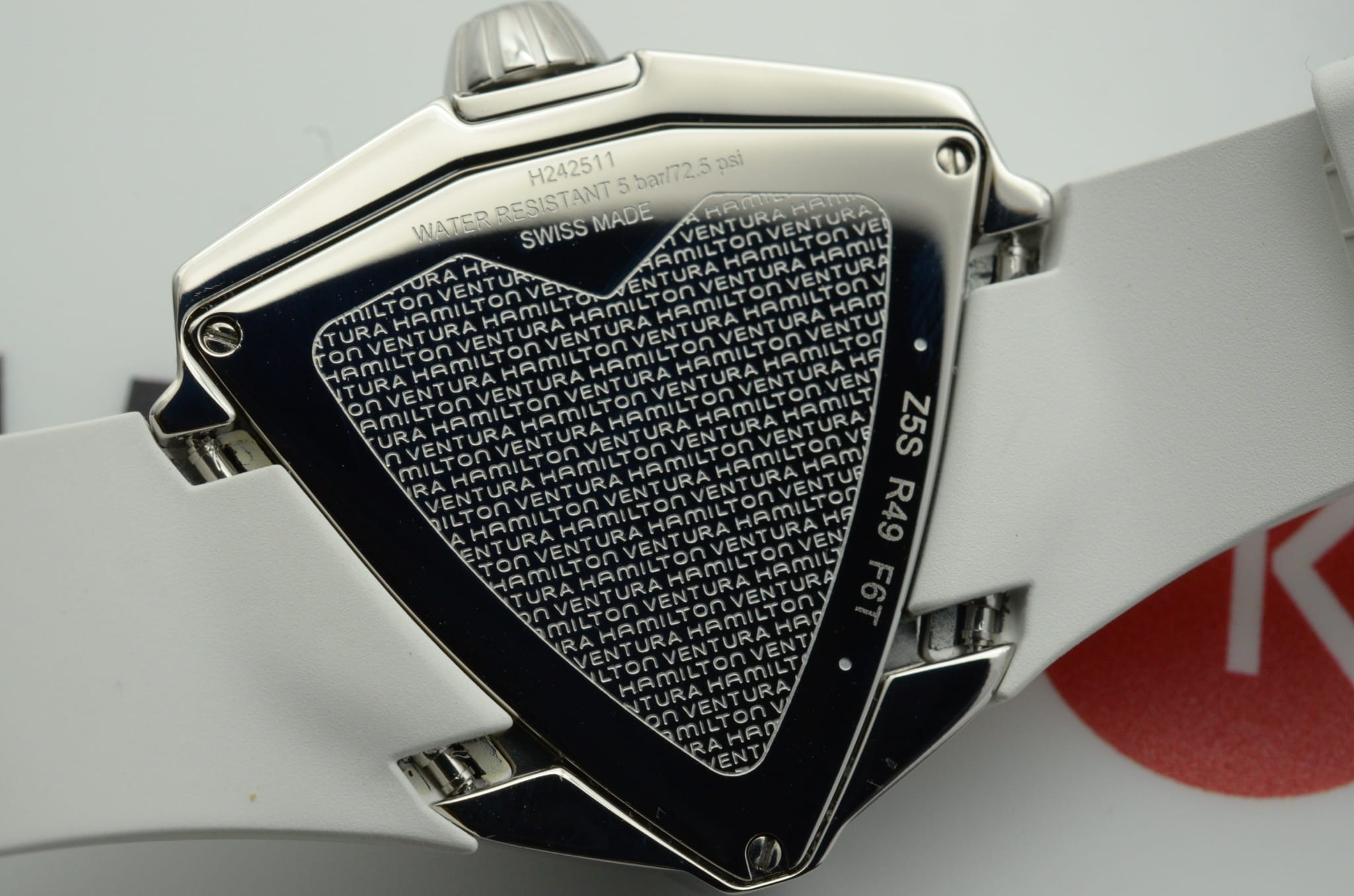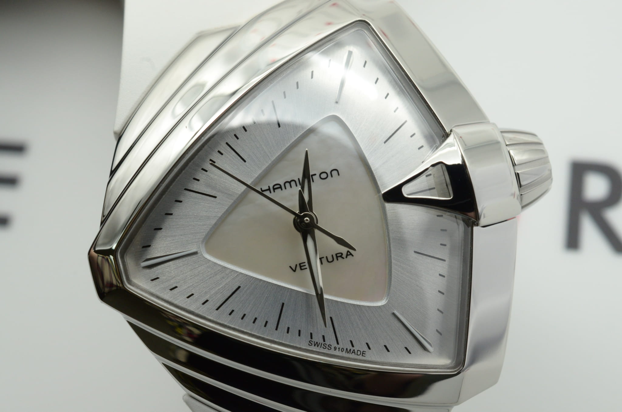 Женские швейцарские часы Hamilton Ventura H24251391, кварцевый механизм с высокой точностью. Сапфировое стеклоСапфировое стеклоПрочный и надёжный материал из кристалла сапфира синтетического происхождения, характеризующийся особой твёрдостью и устойчивостью к царапинам и повреждениям. устойчивое к появлению царапин, обладающее высокой прозрачностью. Класс водозащиты: 50 метров, позволит защитить корпус от случайных брызг или капель дождя. Корпус часов изготовлен из нержавеющей стали.