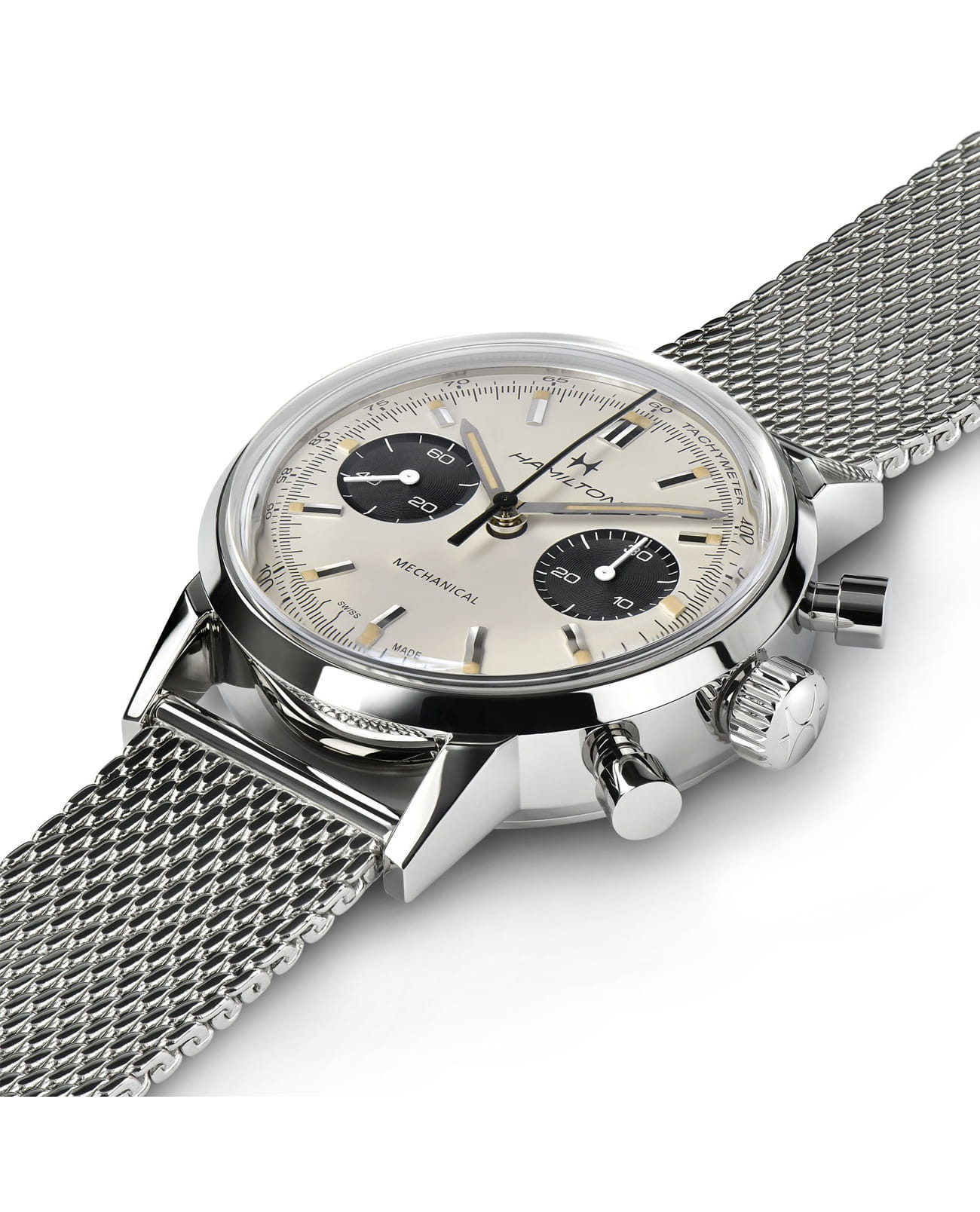 Почувствуйте дыхание часового искусства при каждом заводе Hamilton American Classic Intra-Matic Chronograph H H38429110. Модель, оснащенная механизмом хронографа с ручным заводом H-51, воплощает собой часы с душой. Выпуклое сапфировое стекло с двусторонним антибликовым покрытием защищает фирменный циферблат окраски «панда», который придает механической версии винтажного изделия особую аутентичность.