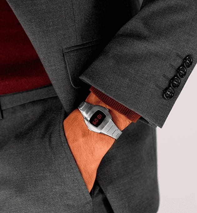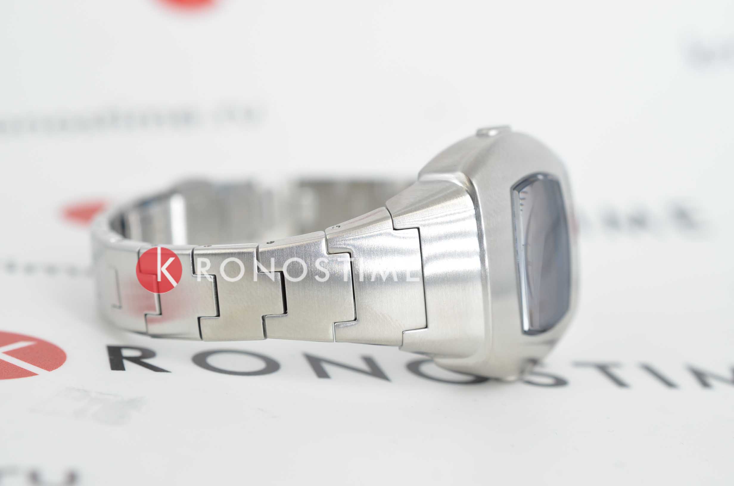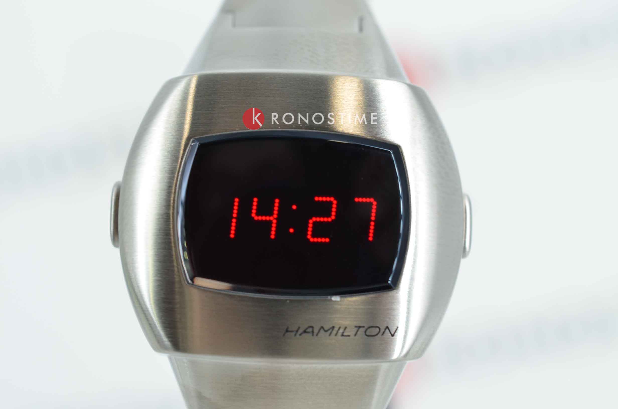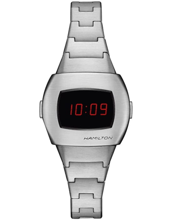 Hamilton American Classic PSR 74 H52304130 — современное переосмысление легендарных цифровых часов Pulsar 1974 года в культовом ретро-дизайне. Компактный корпус 25,6 × 30,9 мм выполнен из матовой нержавеющей стали и отличается лаконичной прямоугольной формой. Дисплей представляет собой гибрид: постоянная LCD-индикация дополнена активируемой LED-подсветкой, отображающей красные цифры времени при нажатии кнопки. Циферблат защищён сапфировым стекломСапфировое стеклоПрочный и надёжный материал из кристалла сапфира синтетического происхождения, характеризующийся особой твёрдостью и устойчивостью к царапинам и повреждениям. с антибликовым покрытием. Кварцевый механизм обеспечивает точную работу и до 4 лет автономной службы. Формат отображения времени может быть выбран между 12- и 24-часовым, также доступен показ даты. Часы укомплектованы браслетом из нержавеющей стали с широкими звеньями и застёжкой 'бабочка'Застёжка "бабочка"Такой вид застёжки дополняется предохранителями, помогающими избежать случайного раскрытия браслета. Обладают изящным исполнением. , обеспечивающей удобную посадку и надёжную фиксацию. Водонепроницаемость 100 метров делает модель подходящей для повседневного использования и плавания. Идеальный выбор для тех, кто ценит эстетическую ностальгию и передовые технологии.
