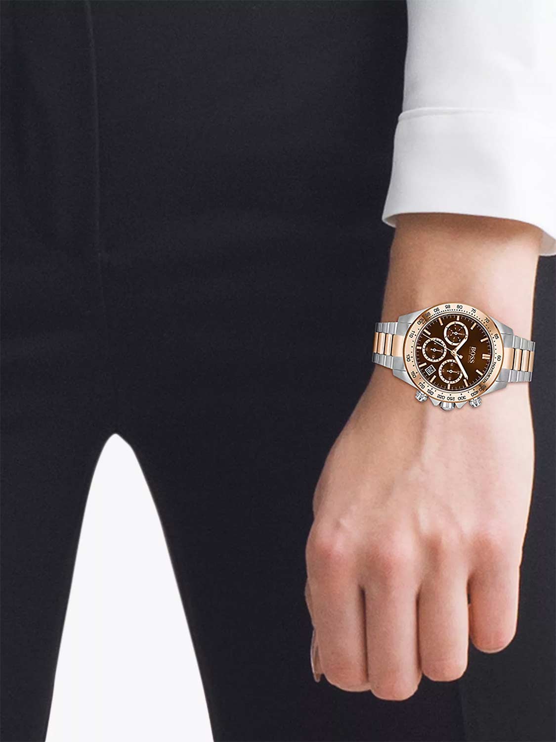 Женские часы с минеральным стеклом Hugo Boss HB 1502617, кварцевый механизм с высокой точностью. Класс водозащиты: 50 метров, позволит защитить корпус от случайных брызг или капель дождя. Корпус часов изготовлен из стали, разноцветного цвета.