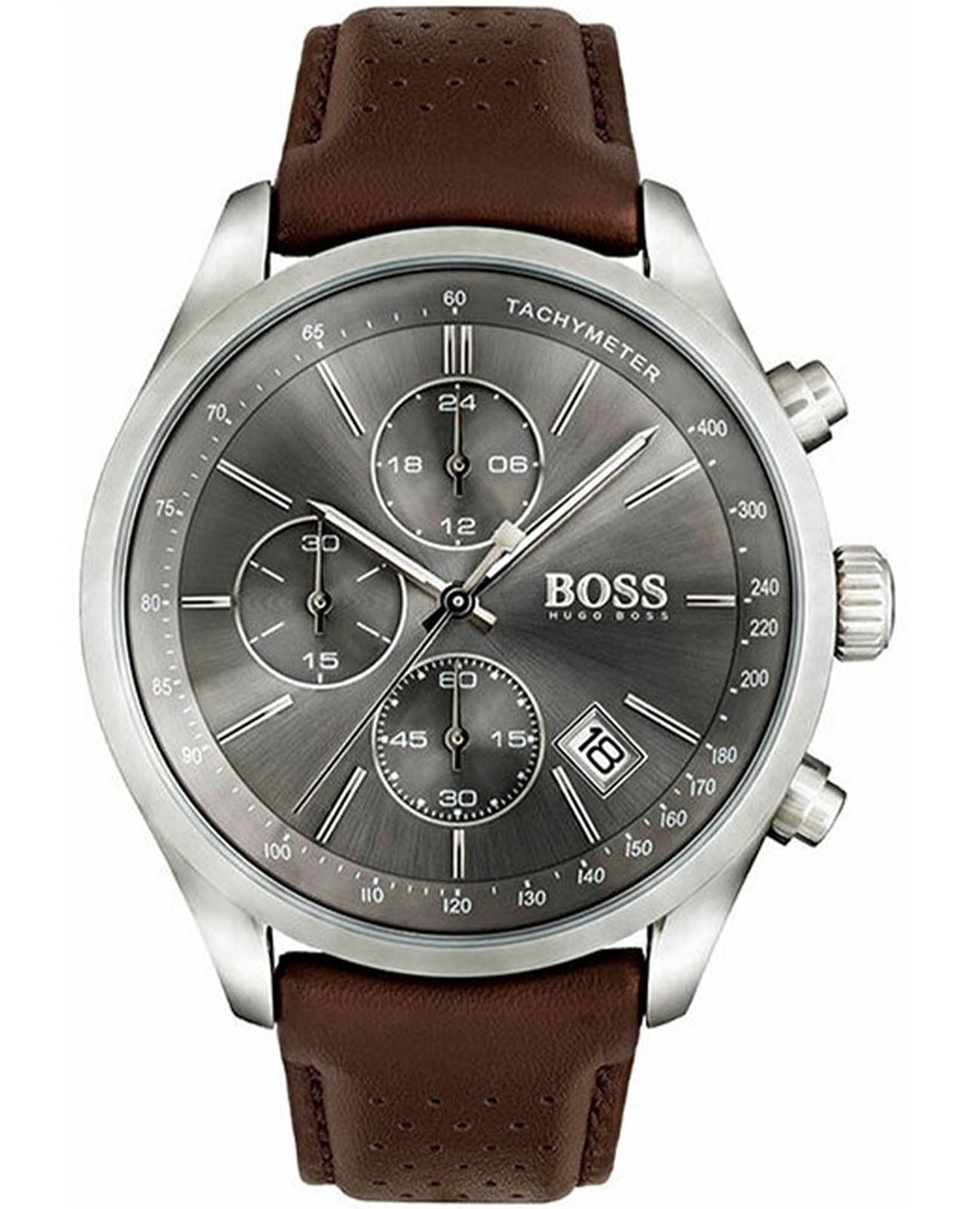 Мужские элегантные часы Hugo Boss Grand Prix HB1513476 представлены в 44-мм серебристом корпусе из нержавеющей стали. Модель оснащена кварцевым механизмом с функцией хронографаХронографФункция позволяет измерять отрезки времени с особой точностью: часы, минуты, секунды. Верным признаком хронографа является наличие на циферблате 3 дополнительных окошек-счётчиков., тахиметраТахиметрРазмеченная шкала, располагается на ободке или безеле часов. Тахиметр позволяет рассчитать скорость на определённом участке пути, расстояние измеряется в километрах или милях. и секундомераСекундомерСекундоме́р — прибор, способный измерять интервалы времени с точностью до долей секунды., а также c окошком даты. Стильный циферблат с метками защищен устойчивым к царапинам минеральным стекломМинеральное стеклоМинеральное стекло представляет собой искусственно выращенный минерал кварца. Такое стекло отличается особой устойчивостью к повреждениям и царапинам. Уступает по некоторым качествам сапфировому стеклу.. Классический кожаный ремень коричневого цвета дополнен стандартной застежкой. Люминесцентное покрытиеЛюминесцентное покрытиеПозволяет считывать показания времени в темноте. Производители наносят на стрелки, часовые индексы, безель или поверхность циферблата светонакопительный состав, дающий холодное свечение. на стрелках обеспечивает отличную видимость в темноте. Водонепроницаемость WR 50 (5 ATM) обеспечивает защиту от брызг воды и дождя. Эта модель станет идеальным аксессуаром для ежедневного использования и особых мероприятий, подчеркивая вашу индивидуальность и стиль.