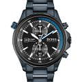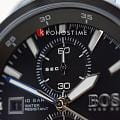 Мужские часы Hugo Boss Globetrotter HB1513824 представлены в круглом 46-мм корпусе из нержавеющей стали с синим IP-покрытиемIP-покрытиеМетод ионного напыления. Демонстрирует повышенную устойчивость к истиранию, окислению и химическим веществам. Под воздействием высокого давления и температуры около 1500°C молекулы металла надёжно соединяются с частицами корпуса часов. толщиной 11–12 мм. Оснащены кварцевым механизмом с функцией хронографаХронографФункция позволяет измерять отрезки времени с особой точностью: часы, минуты, секунды. Верным признаком хронографа является наличие на циферблате 3 дополнительных окошек-счётчиков., секундомеромСекундомерСекундоме́р — прибор, способный измерять интервалы времени с точностью до долей секунды. и тахиметрической шкалой на внутреннем безелеБезельВнешний ободок, закрепляющий стекло. В спортивных часах так называется поворотное кольцо с делениями на циферблате, выполняет роль таймера – замеряет отрезки времени на шкале. Неподвижный безель – элемент декора. Однонаправленно вращающийся безель на дайверских часах позволяет фиксировать моменты погружения и выныривания на поверхность.. Черный циферблат с окошком даты защищен устойчивым к царапинам минеральным стекломМинеральное стеклоМинеральное стекло представляет собой искусственно выращенный минерал кварца. Такое стекло отличается особой устойчивостью к повреждениям и царапинам. Уступает по некоторым качествам сапфировому стеклу.. Стальной браслет с IP-покрытиемIP-покрытиеМетод ионного напыления. Демонстрирует повышенную устойчивость к истиранию, окислению и химическим веществам. Под воздействием высокого давления и температуры около 1500°C молекулы металла надёжно соединяются с частицами корпуса часов. дополнен раскладной застёжкойРаскладная застёжкаТакой тип застёжки используется только на браслетах из металла. Она никогда не раскрывается полностью, происходит разделение на 2 и более частей. Раскладывающая застёжка снизит вероятность потери часов к минимуму.. Стрелки с люминесцентным покрытиемЛюминесцентное покрытиеПозволяет считывать показания времени в темноте. Производители наносят на стрелки, часовые индексы, безель или поверхность циферблата светонакопительный состав, дающий холодное свечение. обеспечивают видимость в темноте. Водонепроницаемость 100 метров (10 ATM) позволяет использовать часы для плавания.