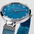 Кварцевый механизм с высокой точностью. Минеральное стеклоМинеральное стеклоМинеральное стекло представляет собой искусственно выращенный минерал кварца. Такое стекло отличается особой устойчивостью к повреждениям и царапинам. Уступает по некоторым качествам сапфировому стеклу. устойчивое к появлению царапин, обладающее высокой прозрачностью. Класс водозащиты: 50 метров, позволит защитить корпус от случайных брызг или капель дождя. Корпус часов изготовлен из нержавеющей стали. Циферблат инкрустирован кристаллами Swarovski. Стальной браслет миланского плетения с PVD-покрытиемPVDУльтратонкое покрытие наносится в технике вакуумного напыления, сочетает в себе нитрид титана особой прочности со слоем золота или оксида хрома. Несёт в себе декоративную или защитную функцию. на раскладной застёжкеРаскладная застёжкаТакой тип застёжки используется только на браслетах из металла. Она никогда не раскрывается полностью, происходит разделение на 2 и более частей. Раскладывающая застёжка снизит вероятность потери часов к минимуму..
