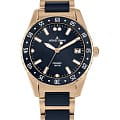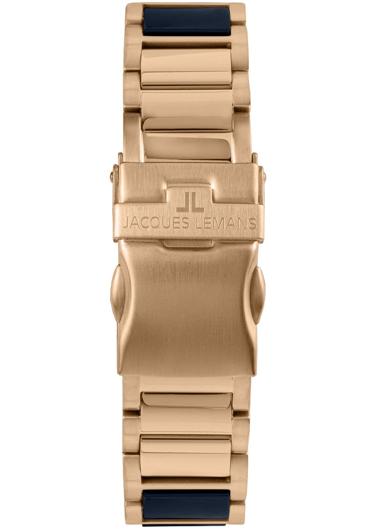 Женские австрийские часы Jacques Lemans High Tech Ceramic 42-12H с минеральным стекломМинеральное стеклоМинеральное стекло представляет собой искусственно выращенный минерал кварца. Такое стекло отличается особой устойчивостью к повреждениям и царапинам. Уступает по некоторым качествам сапфировому стеклу.. Часы с явными спортивными акцентами могут выглядеть элегантно. Крупный корпус диаметром 34 мм сделан из нержавеющей стали с PVD-покрытиемPVDУльтратонкое покрытие наносится в технике вакуумного напыления, сочетает в себе нитрид титана особой прочности со слоем золота или оксида хрома. Несёт в себе декоративную или защитную функцию., на широкий безельБезельВнешний ободок, закрепляющий стекло. В спортивных часах так называется поворотное кольцо с делениями на циферблате, выполняет роль таймера – замеряет отрезки времени на шкале. Неподвижный безель – элемент декора. Однонаправленно вращающийся безель на дайверских часах позволяет фиксировать моменты погружения и выныривания на поверхность. вынесена дополнительная индикация. Точный кварцевый механизм отвечает за движение хорошо читаемых стрелок, покрытых люминесцентным составомЛюминесцентное покрытиеПозволяет считывать показания времени в темноте. Производители наносят на стрелки, часовые индексы, безель или поверхность циферблата светонакопительный состав, дающий холодное свечение.. Таким же образом выделены и индексы, поэтому время по этим часам легко определить даже в темноте. В положении «3 часа» находится окошко даты. Еще одна спортивная составляющая — повышенная водостойкость, равная 10 атмосфер: в часах можно плавать. Вместе с этим, модель идеально впишется и в классический образ, и в повседневный. Особая деталь — звенья браслета из высокотехнологичной керамикиВысокотехнологичная керамикаИнновационный запатентованный Rado материал с гладкой или матовой поверхностью. Керамика за счёт кристаллической структуры обладает повышенной устойчивостью от возникновения царапин. Материал способен принимать температуру тела человека, обеспечивая невероятный комфорт при ношении. синего цвета, в тон циферблату. Этот материал удобно носить даже в мороз: он быстро нагревается до комфортной температуры тела. К тому же, керамика стойко сопротивляется появлению микроцарапин. На браслет установлена раскладная застёжкаРаскладная застёжкаТакой тип застёжки используется только на браслетах из металла. Она никогда не раскрывается полностью, происходит разделение на 2 и более частей. Раскладывающая застёжка снизит вероятность потери часов к минимуму..