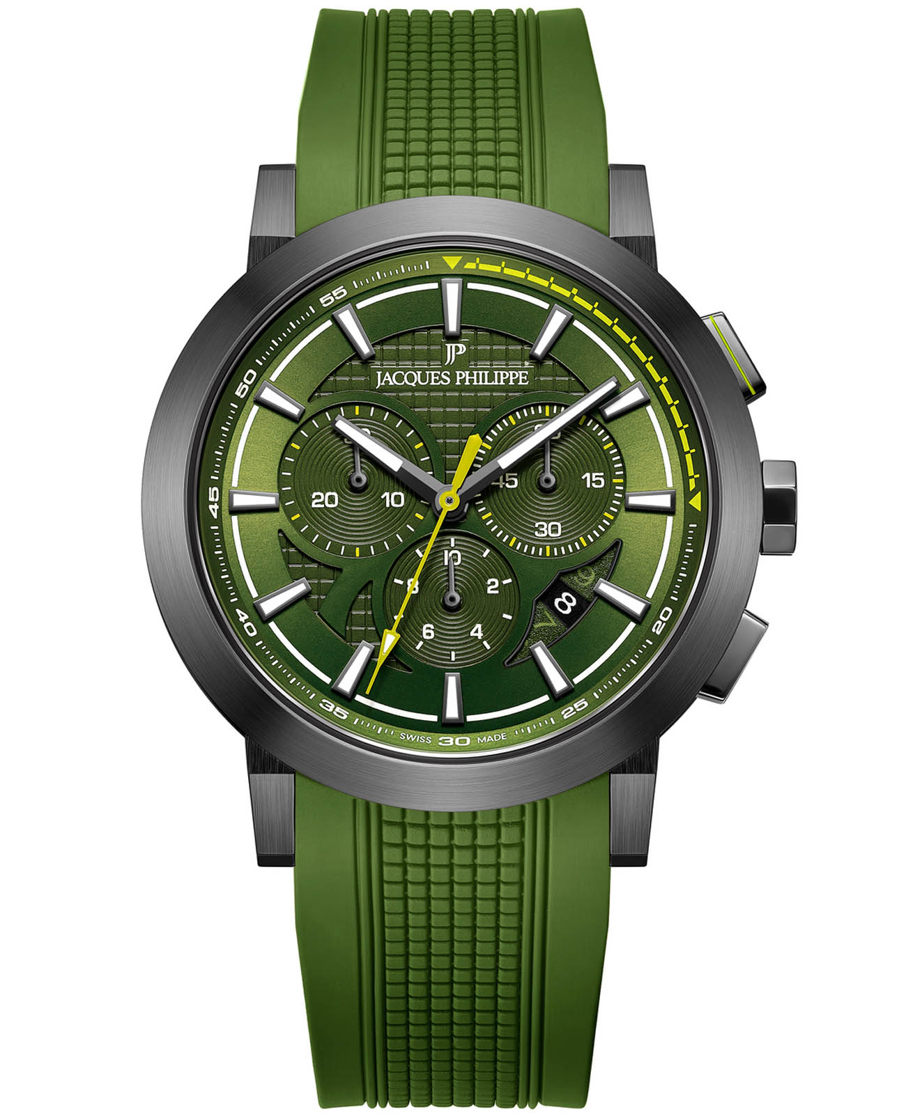 Часы Jacques Philippe JPQGC3784XX из коллекции Corus — элегантные мужские часы, сочетающие в себе швейцарское качество и современный дизайн. Корпус диаметром 43 мм выполнен из нержавеющей стали, а зеленый циферблат защищён сапфировым стекломСапфировое стеклоПрочный и надёжный материал из кристалла сапфира синтетического происхождения, характеризующийся особой твёрдостью и устойчивостью к царапинам и повреждениям..