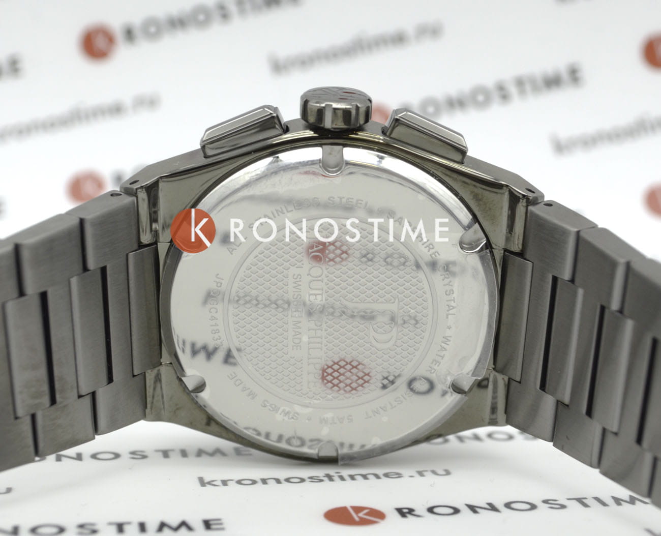 Швейцарские мужские часы-хронографХронографФункция позволяет измерять отрезки времени с особой точностью: часы, минуты, секунды. Верным признаком хронографа является наличие на циферблате 3 дополнительных окошек-счётчиков. с секундомеромСекундомерСекундоме́р — прибор, способный измерять интервалы времени с точностью до долей секунды. Jacques Philippe Aurora JPQGC418337, кварцевый механизм с высокой точностью. Сапфировое стеклоСапфировое стеклоПрочный и надёжный материал из кристалла сапфира синтетического происхождения, характеризующийся особой твёрдостью и устойчивостью к царапинам и повреждениям. устойчивое к появлению царапин, обладающее высокой прозрачностью. Корпус часов изготовлен из нержавеющей стали с IP-покрытиемIP-покрытиеМетод ионного напыления. Демонстрирует повышенную устойчивость к истиранию, окислению и химическим веществам. Под воздействием высокого давления и температуры около 1500°C молекулы металла надёжно соединяются с частицами корпуса часов.. На циферблате три дополнительных индикатора. Окошко даты находится в положении 4 часа. Стрелки с люминесцентным покрытиемЛюминесцентное покрытиеПозволяет считывать показания времени в темноте. Производители наносят на стрелки, часовые индексы, безель или поверхность циферблата светонакопительный состав, дающий холодное свечение.. Класс водозащиты: 50 метров, позволит защитить корпус от случайных брызг или капель дождя. Стальной браслет с IP-покрытиемIP-покрытиеМетод ионного напыления. Демонстрирует повышенную устойчивость к истиранию, окислению и химическим веществам. Под воздействием высокого давления и температуры около 1500°C молекулы металла надёжно соединяются с частицами корпуса часов. на застёжке «бабочка» с кнопкамиЗастёжка "бабочка"Такой вид застёжки дополняется предохранителями, помогающими избежать случайного раскрытия браслета. Обладают изящным исполнением. .