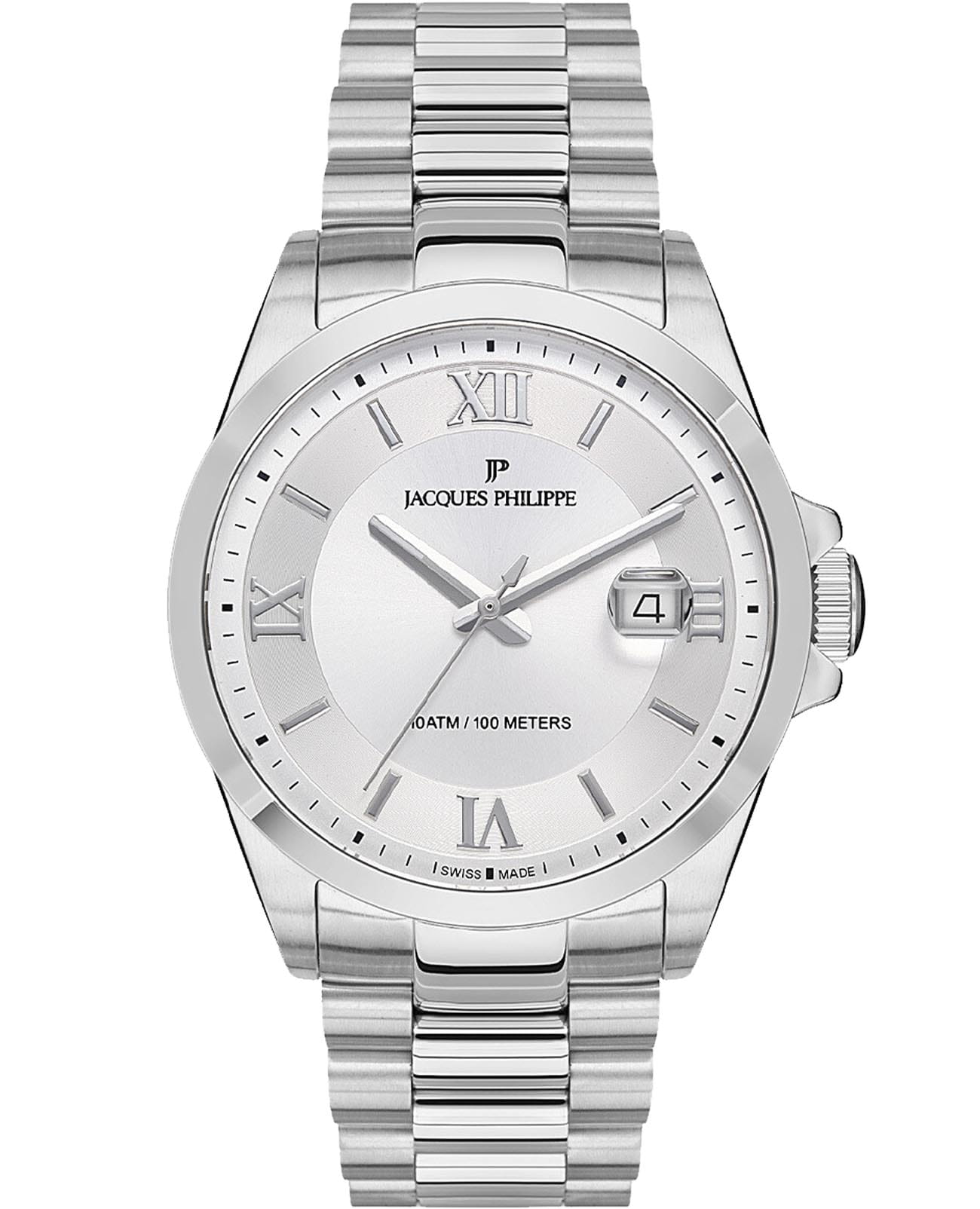 Швейцарские Женские часы Jacques Philippe Infinitum JPQGS331326, кварцевый механизм с высокой точностью. Сапфировое стеклоСапфировое стеклоПрочный и надёжный материал из кристалла сапфира синтетического происхождения, характеризующийся особой твёрдостью и устойчивостью к царапинам и повреждениям. устойчивое к появлению царапин, обладающее высокой прозрачностью. Корпус часов изготовлен из нержавеющей стали. Стрелки с люминесцентным покрытиемЛюминесцентное покрытиеПозволяет считывать показания времени в темноте. Производители наносят на стрелки, часовые индексы, безель или поверхность циферблата светонакопительный состав, дающий холодное свечение.. Окошко даты находится в положении 3 часа. Класс водозащиты: 100 метров, позволит плавать, нырять и заниматься другими водными видами спорта. Стальной браслет на застёжке «бабочка» с кнопкамиЗастёжка "бабочка"Такой вид застёжки дополняется предохранителями, помогающими избежать случайного раскрытия браслета. Обладают изящным исполнением. .
