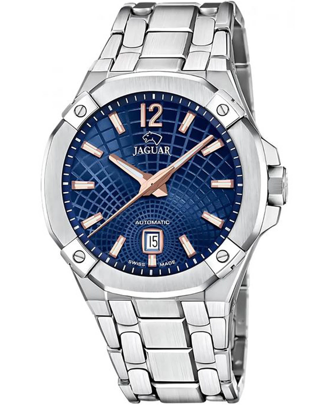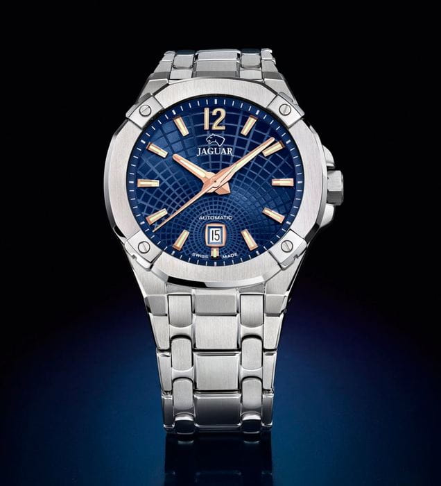 Мужские швейцарские часы Jaguar Diplomatic J1029/2 представляют собой воплощение высокого часового искусства. Они оснащены механическим механизмом с автоподзаводом, что обеспечивает точность и надёжность работы. Часы защищены сапфировым стекломСапфировое стеклоПрочный и надёжный материал из кристалла сапфира синтетического происхождения, характеризующийся особой твёрдостью и устойчивостью к царапинам и повреждениям., устойчивым к мелким механическим повреждениям, что гарантирует сохранность механизма. Корпус часов выполнен из нержавеющей стали, придающий ему прочность и долговечность. Стрелки и метки часов покрыты люминесцентным составомЛюминесцентное покрытиеПозволяет считывать показания времени в темноте. Производители наносят на стрелки, часовые индексы, безель или поверхность циферблата светонакопительный состав, дающий холодное свечение., обеспечивающий их хорошую видимость в условиях недостаточной освещённости. Окошко даты расположено в положении 6 часов. Класс водозащиты часов составляет 100 метров, что позволяет плавать, нырять и заниматься другими водными видами спорта. Изысканный стальной браслет на раскладной застёжкеРаскладная застёжкаТакой тип застёжки используется только на браслетах из металла. Она никогда не раскрывается полностью, происходит разделение на 2 и более частей. Раскладывающая застёжка снизит вероятность потери часов к минимуму., что обеспечивает удобство и комфорт при ношении. Стильный  циферблат и изысканные детали делают эти часы незаменимым аксессуаром для любого случая, от официальных мероприятий до повседневного использования.