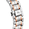 Эти часы защищены сапфировым стекломСапфировое стеклоПрочный и надёжный материал из кристалла сапфира синтетического происхождения, характеризующийся особой твёрдостью и устойчивостью к царапинам и повреждениям., которое не боится мелких механических повреждений, обеспечивая долговечность и надежность механизма. Корпус и браслет выполнены из нержавеющей стали с частичным PVD-покрытиемPVDУльтратонкое покрытие наносится в технике вакуумного напыления, сочетает в себе нитрид титана особой прочности со слоем золота или оксида хрома. Несёт в себе декоративную или защитную функцию., что придает им прочность и элегантность. БезельБезельВнешний ободок, закрепляющий стекло. В спортивных часах так называется поворотное кольцо с делениями на циферблате, выполняет роль таймера – замеряет отрезки времени на шкале. Неподвижный безель – элемент декора. Однонаправленно вращающийся безель на дайверских часах позволяет фиксировать моменты погружения и выныривания на поверхность. с PVD-покрытиемPVDУльтратонкое покрытие наносится в технике вакуумного напыления, сочетает в себе нитрид титана особой прочности со слоем золота или оксида хрома. Несёт в себе декоративную или защитную функцию..
