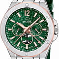 Jaguar J1040/3 из коллекции Moonphase — элегантные мужские часы, сочетающие стиль и функциональность. Корпус диаметром 44 мм выполнен из нержавеющей стали, а безельБезельВнешний ободок, закрепляющий стекло. В спортивных часах так называется поворотное кольцо с делениями на циферблате, выполняет роль таймера – замеряет отрезки времени на шкале. Неподвижный безель – элемент декора. Однонаправленно вращающийся безель на дайверских часах позволяет фиксировать моменты погружения и выныривания на поверхность. покрыт PVD-покрытиемPVDУльтратонкое покрытие наносится в технике вакуумного напыления, сочетает в себе нитрид титана особой прочности со слоем золота или оксида хрома. Несёт в себе декоративную или защитную функцию., что придаёт часам изысканный внешний вид и дополнительную устойчивость к износу. Сапфировое стеклоСапфировое стеклоПрочный и надёжный материал из кристалла сапфира синтетического происхождения, характеризующийся особой твёрдостью и устойчивостью к царапинам и повреждениям. защищает циферблат от царапин и повреждений. Зеленый циферблат с серебристыми индексами и стрелками обеспечивает отличную читаемость. Часы оснащены функциями индикации даты, дня недели и фазы луны, добавляя практичности и элегантности. Ремешок выполнен из кожи, что обеспечивает комфортное ношение. Классическая застёжка гарантирует надёжную фиксацию на запястье. Водозащита до 10 ATM (100 метров) делает часы подходящими для плавания и занятий водными видами спорта. Jaguar J1040/3 — это выбор для мужчин, которые ценят швейцарское качество, стиль и функциональность.