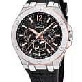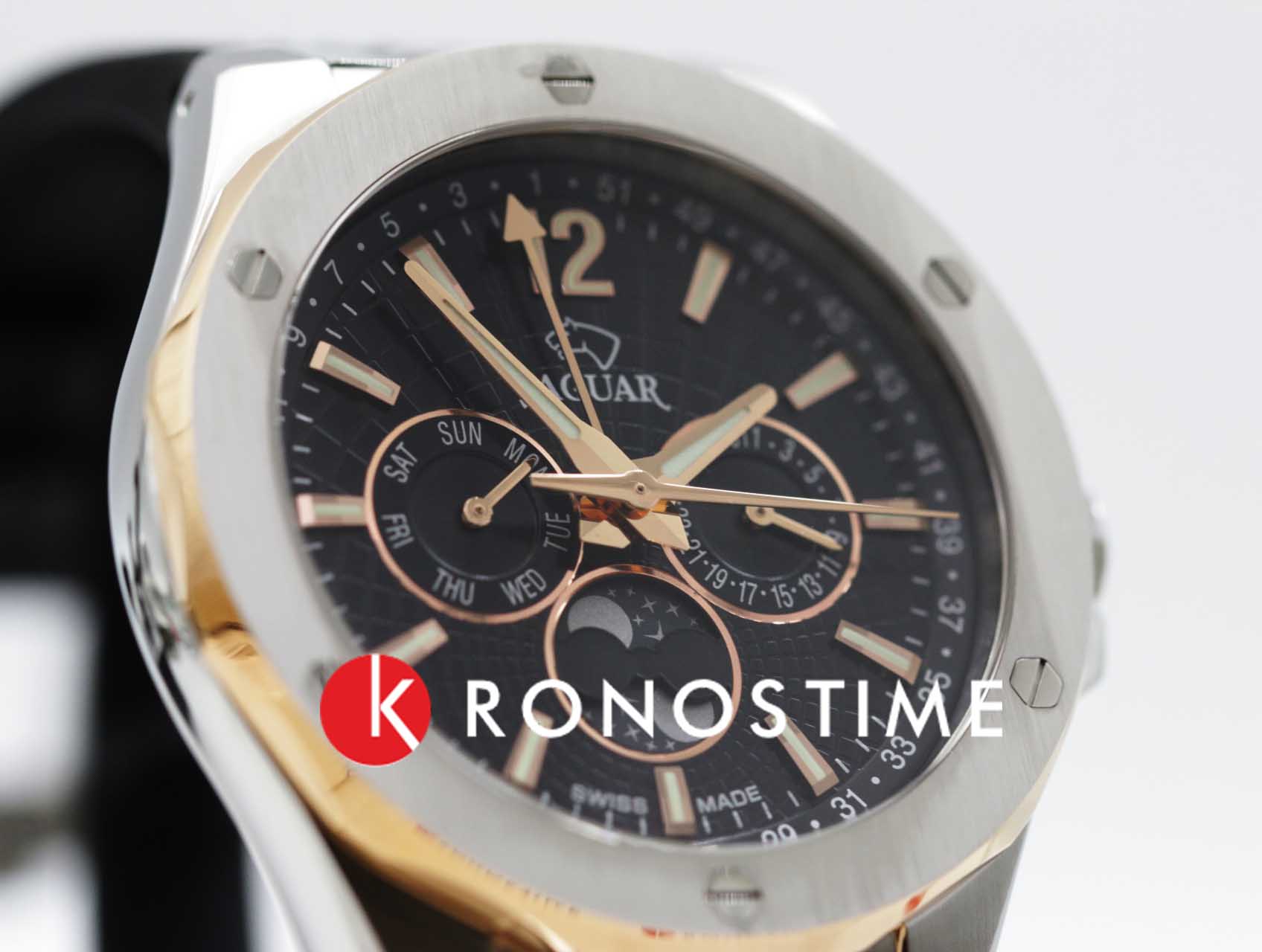 Jaguar J1040/4 из коллекции Moonphase — элегантные мужские часы, сочетающие стиль и функциональность. Корпус диаметром 44 мм выполнен из нержавеющей стали, а безельБезельВнешний ободок, закрепляющий стекло. В спортивных часах так называется поворотное кольцо с делениями на циферблате, выполняет роль таймера – замеряет отрезки времени на шкале. Неподвижный безель – элемент декора. Однонаправленно вращающийся безель на дайверских часах позволяет фиксировать моменты погружения и выныривания на поверхность. покрыт PVD-покрытиемPVDУльтратонкое покрытие наносится в технике вакуумного напыления, сочетает в себе нитрид титана особой прочности со слоем золота или оксида хрома. Несёт в себе декоративную или защитную функцию., что придаёт часам изысканный внешний вид и дополнительную устойчивость к износу. Сапфировое стеклоСапфировое стеклоПрочный и надёжный материал из кристалла сапфира синтетического происхождения, характеризующийся особой твёрдостью и устойчивостью к царапинам и повреждениям. защищает циферблат от царапин и повреждений. Черный циферблат с серебристыми индексами и стрелками обеспечивает отличную читаемость. Часы оснащены функциями индикации даты, дня недели и фазы луны, добавляя практичности и элегантности. Кожаный ремень, который обеспечивает комфортное ношение и стандартная застежка гарантирует надёжную фиксацию на запястье. Водозащита до 10 ATM (100 метров) делает часы подходящими для плавания и занятий водными видами спорта. Jaguar J1040/4 — это выбор для мужчин, которые ценят швейцарское качество, стиль и функциональность.